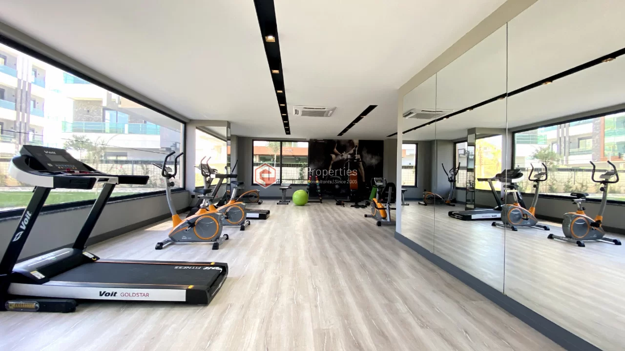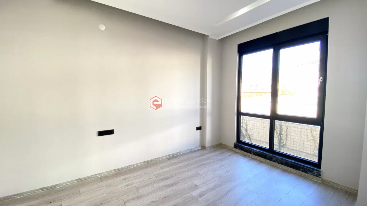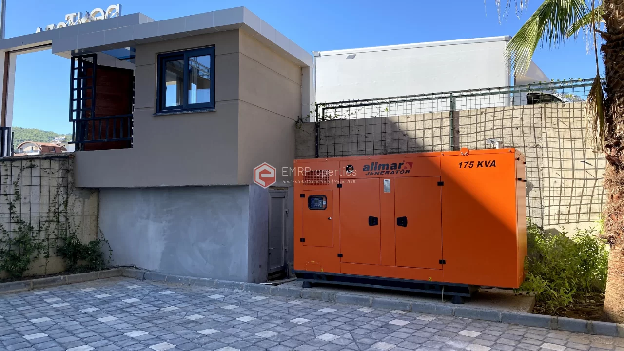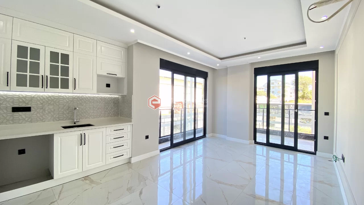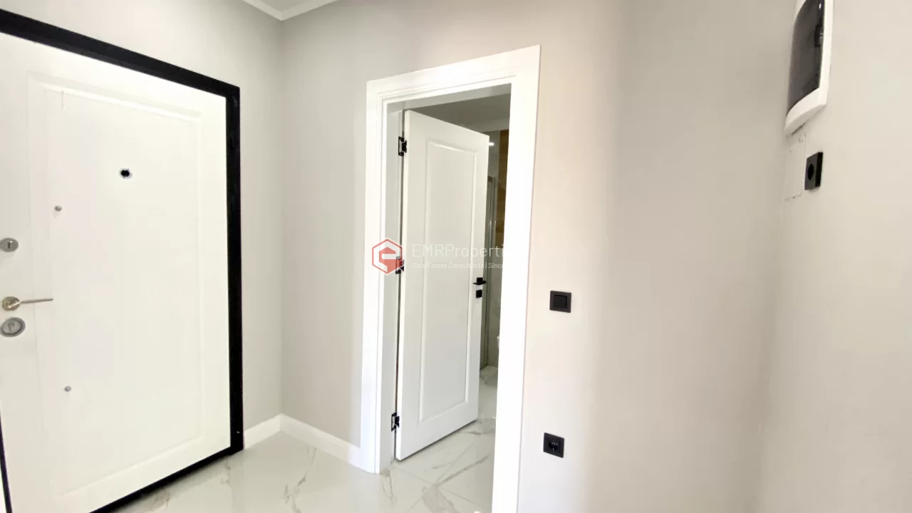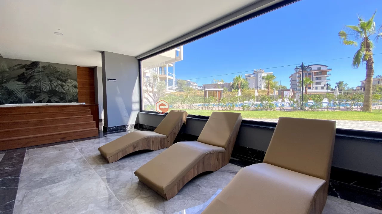 Ovaj novi stan ima 110m2. Stan ima 2 spavaće sobe, 1 dnevni boravak, dva moderna kupatila i američku kuhinju. Stan ima 2 balkona na zapadnoj i južnoj fasadi. Tu su otvoreni bazen, sauna, tursko kupatilo, teretana i igralište, zajednička bašta. Apartman se nalazi na 1. katu i nudi pogled na bazen, vrt i prirodu. Stan se nalazi u srcu Alanje, 2 km od mora i 1 km od bolnice i trgovačkih centara.
