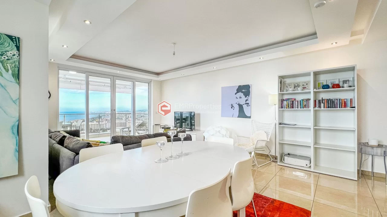 Ovaj penthouse duplex sa prekrasnim pogledom na more i planine nalazi se u Konakliju. Namješten stan je širok 150 kvadratnih metara i ima 4 spavaće sobe, 1 dnevni boravak sa američkom kuhinjom, 2 kupaonice, 3 balkona i 1 podrum. Dvoetažni stan koji se nalazi na 3. spratu je južne i zapadne orijentacije, tako da dobija konstantnu sunčevu svjetlost. Apartman je udaljen samo 500 metara od mora, 250 metara od trgovina i restorana i samo 2 km od centra mjesta Konakli. Prostrana i udobna lokacija, izgrađena 2008. godine, dizajnirana je atraktivno i sa stilom korištenjem modernih materijala. Lokalitet, koji privlači pažnju svojom lokacijom i pogledom, ima svoju društvenu infrastrukturu i izgleda kako slijedi;