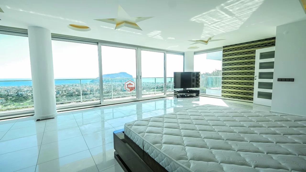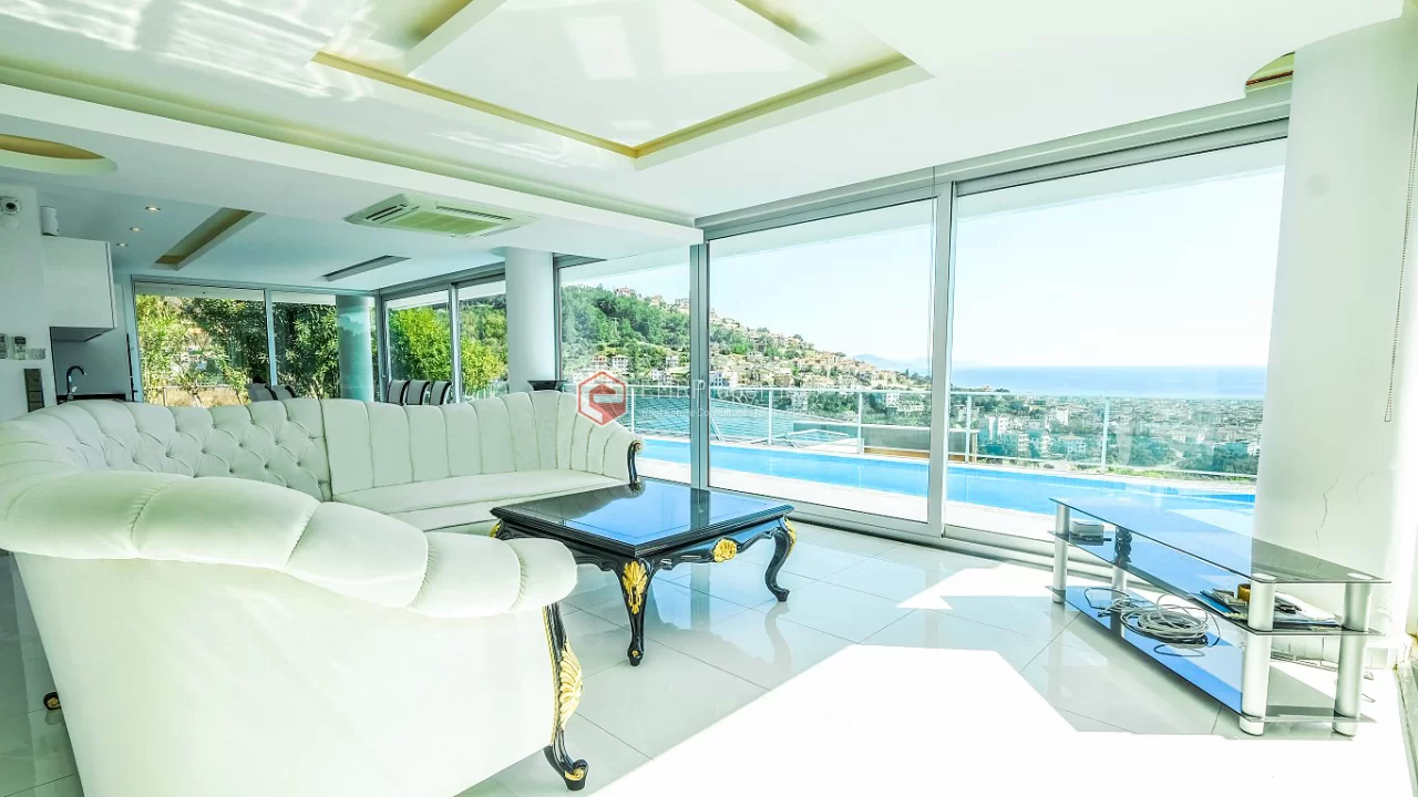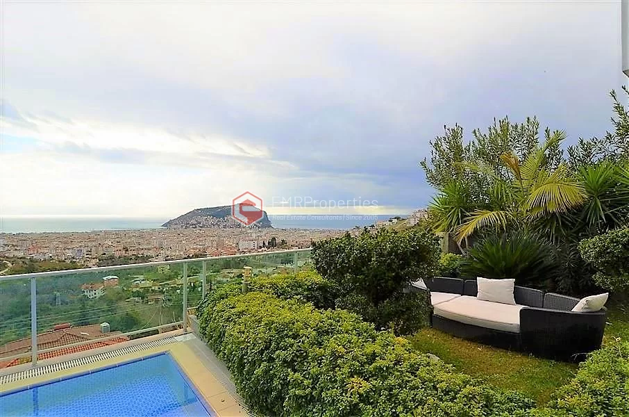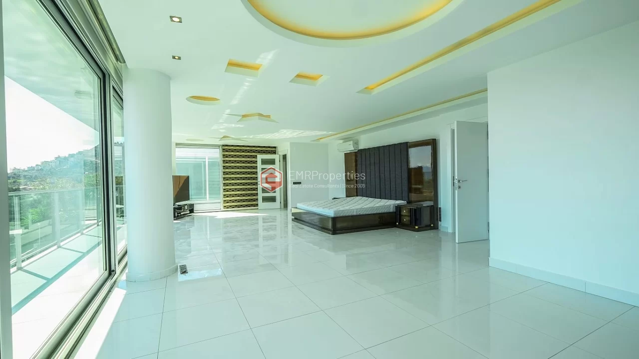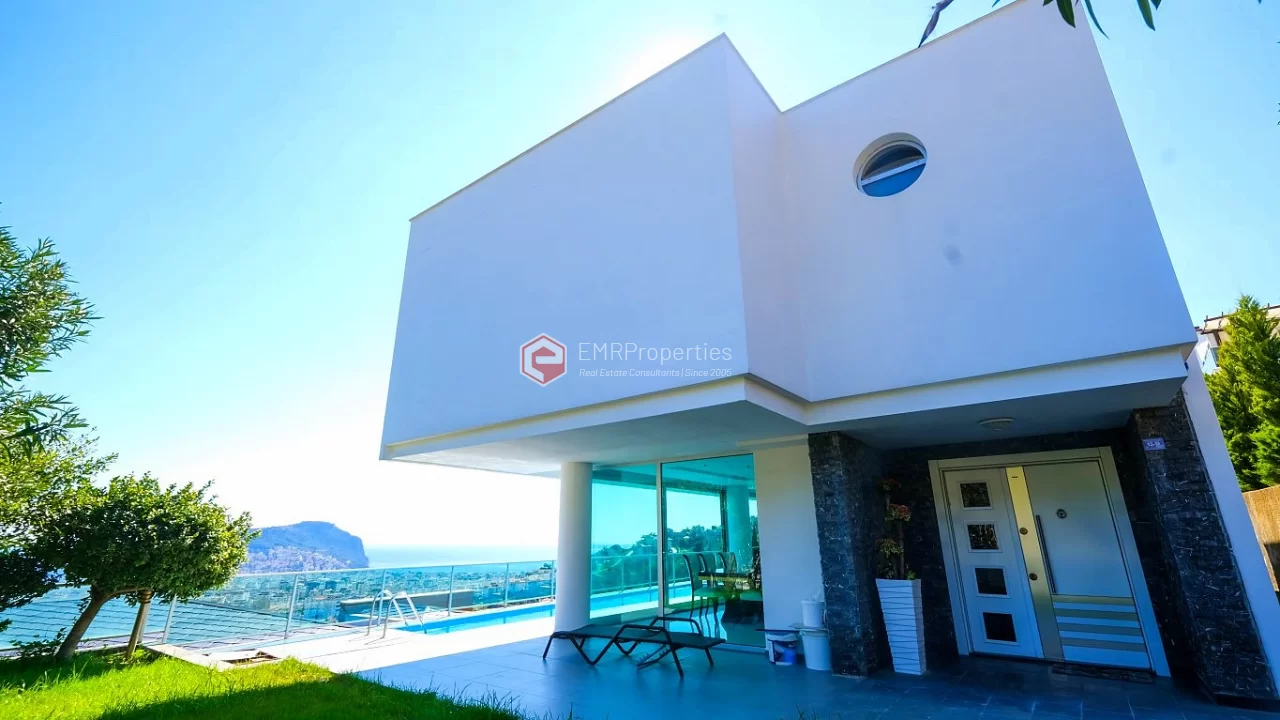 Ova veličanstvena vila nalazi se u najmirnijem delu Alanije. Jedinstvena vila se sastoji od 4 spavaće sobe, 2 dnevne sobe, američke kuhinje, 5 kupaonica i 2 balkona. Vila, koja ima širinu od 366 kvadratnih metara, izgrađena je 2016. godine. Zahvaljujući pametnom rasporedu prostorija, svaki kvadratni metar je efikasan. Okružena planinama i morem, ova vila ima prekrasan panoramski pogled na Alanju. Možete se opustiti u vlastitom bazenu s pogledom na more i dvorac, te se opustiti u njegovom bujnom vrtu.