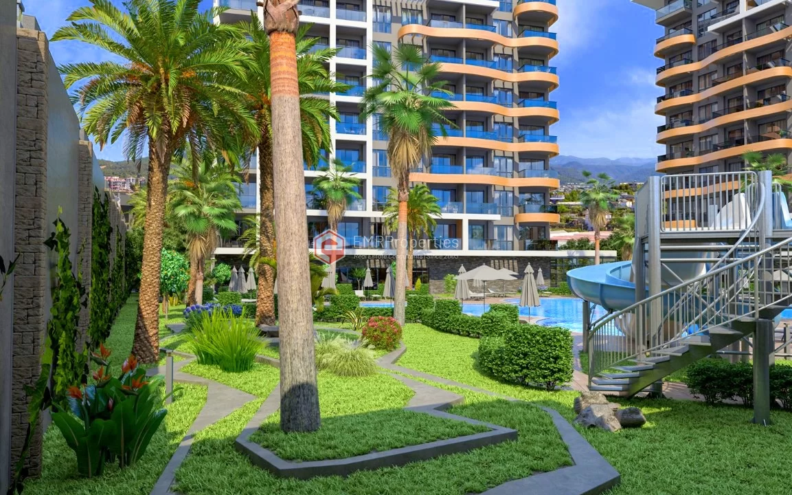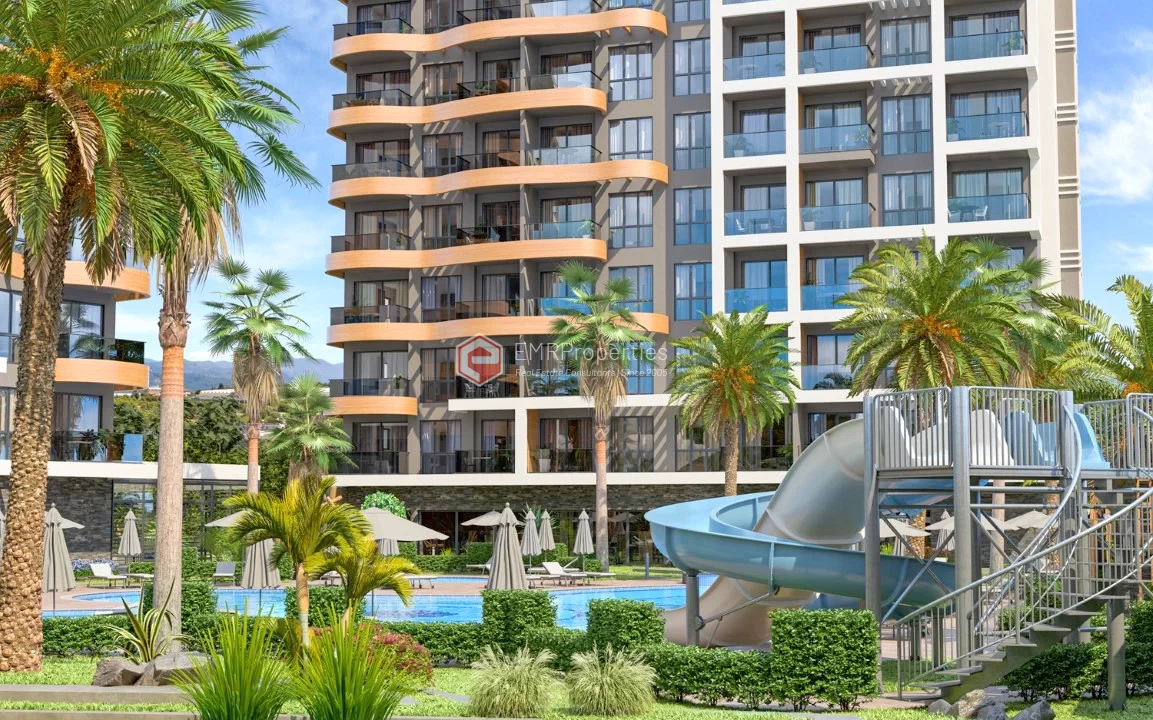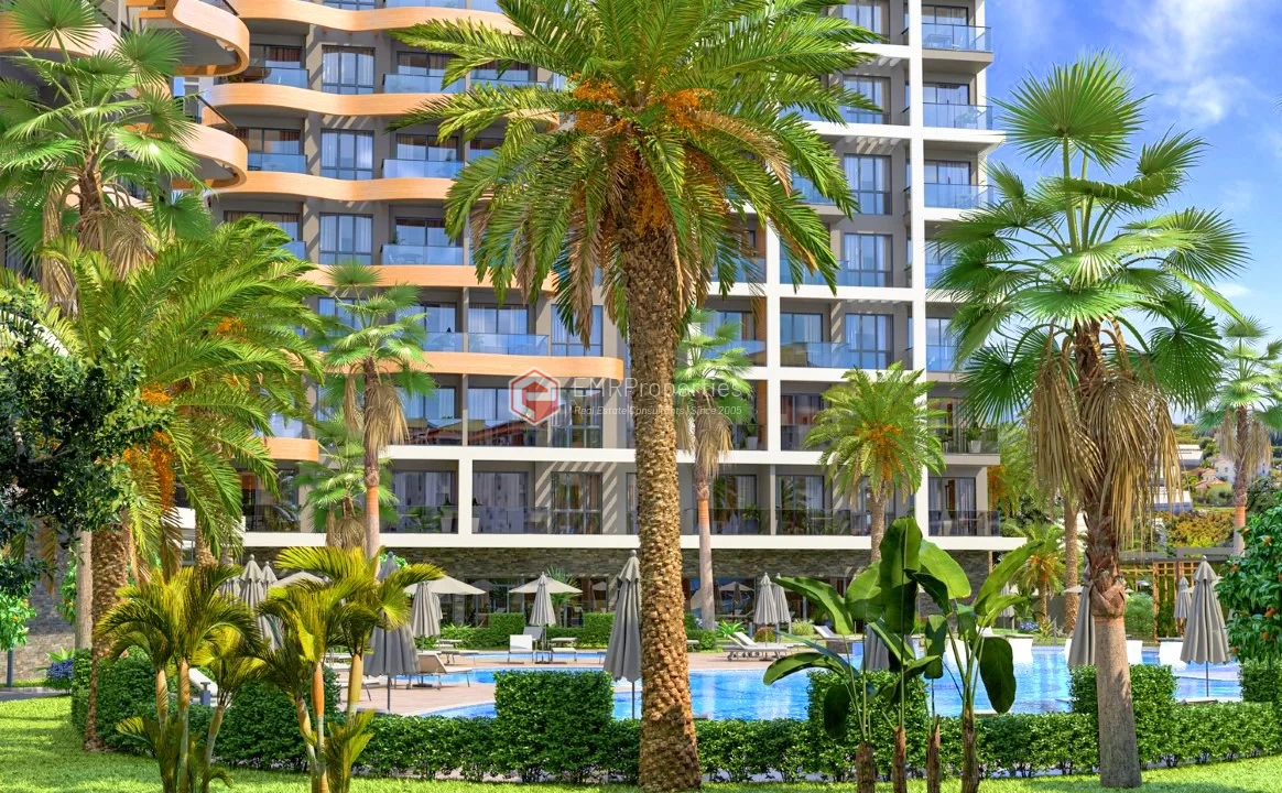 Stan u ovom luksuznom projektu nalazi se u Avsallaru, jednom od najmirnijih i najudobnijih područja Alanje. Avsallar je poznat po svojim pješčanim plažama i prirodnim ljepotama četinarskih šuma. Stan od 57 kvadratnih metara sastoji se od 1 spavaće sobe, dnevnog boravka sa američkom kuhinjom, 1 kupatila i 1 balkona. Stan je južne orijentacije i ima pogled na bazen i grad. Projekat se sastoji od dva bloka sa 117 stanova različitih rasporeda. Moderan dizajn projekta razvila je vodeća arhitektonska firma Alanya. Stambeni blokovi su izgrađeni u skladu sa evropskim standardima, korišćenjem savremenih tehnologija i visokokvalitetnih materijala.