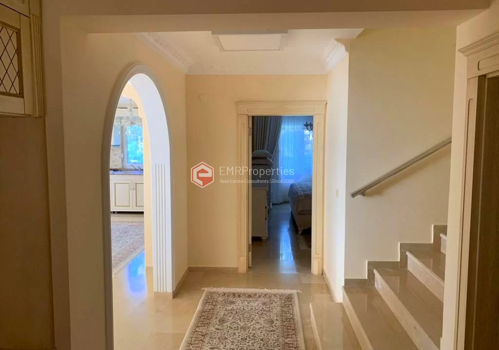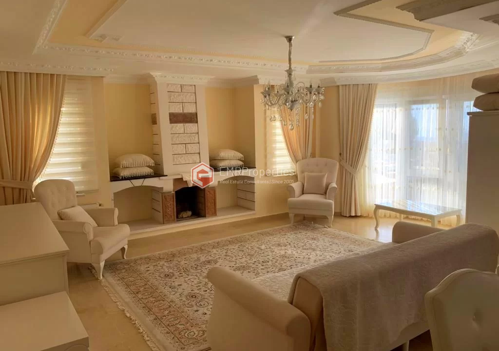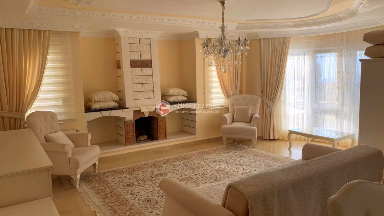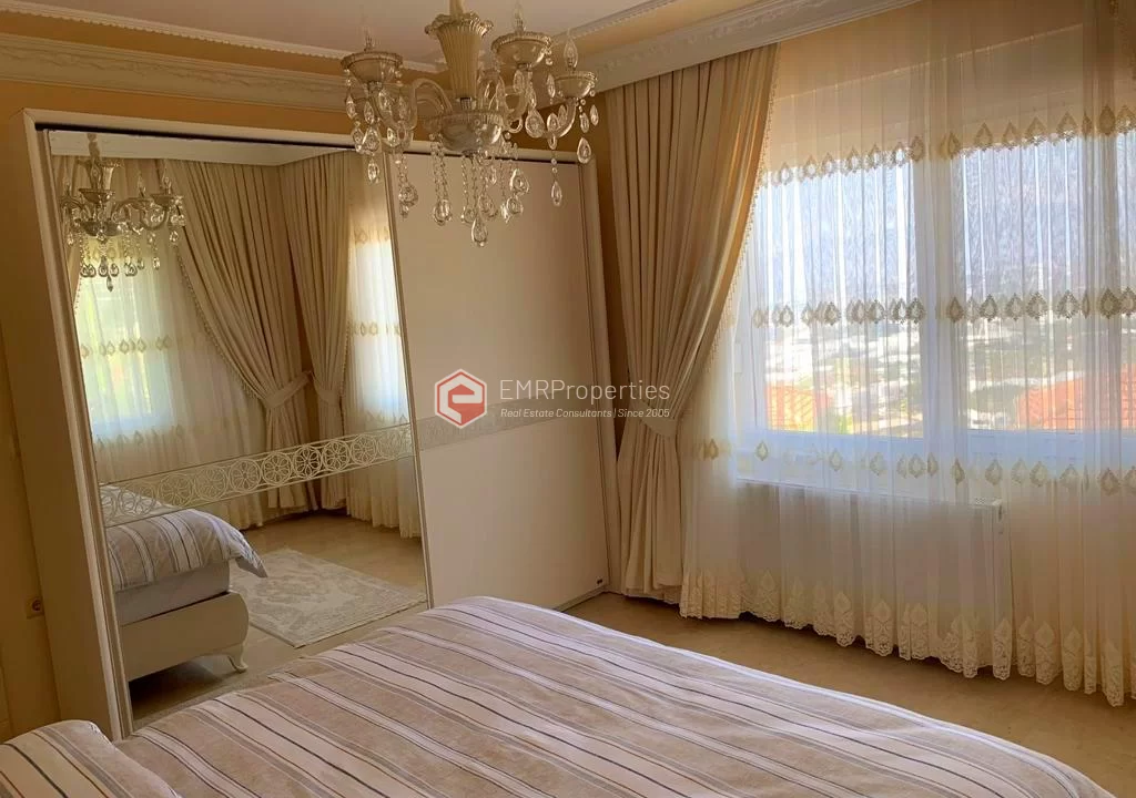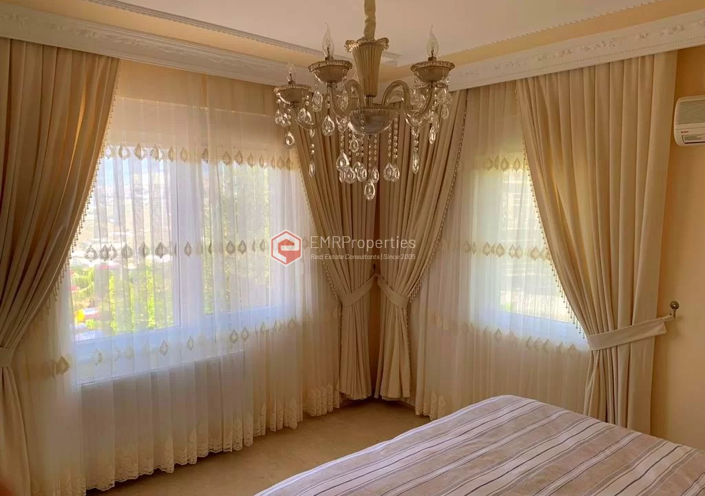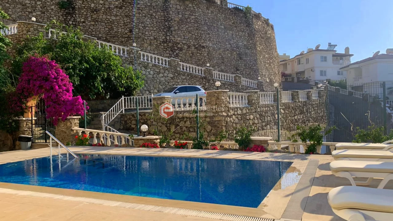 Smještena na sigurnom mjestu u Alanya Kargicaku, vila se sastoji od 4 spavaće sobe, 2 dnevne sobe, velike američke kuhinje, 3 kupaonice i 2 velike terase sa pogledom na more, dvorac, planinu i grad. Na terasi u prizemlju nalazi se privatni prostor za roštilj. Stan se prodaje kompletno namješten i sav namještaj je luksuzan i nov. Vila ima i privatni kamin, jacuzzi i saunu. Ova dupleks vila ima privatni bazen i vrt okružen narandžama, limunom, mandarinom, narom, maslinama, breskvama, dudovima, borovima i palmama, privatni parking za 4 automobila i garažu za 1 auto. Kompleks u kojem se nalazi vila uključuje i vodeni tobogan, teretanu i veliki bazen. Udaljen je 800 metara od mora, 10-15 minuta hoda.