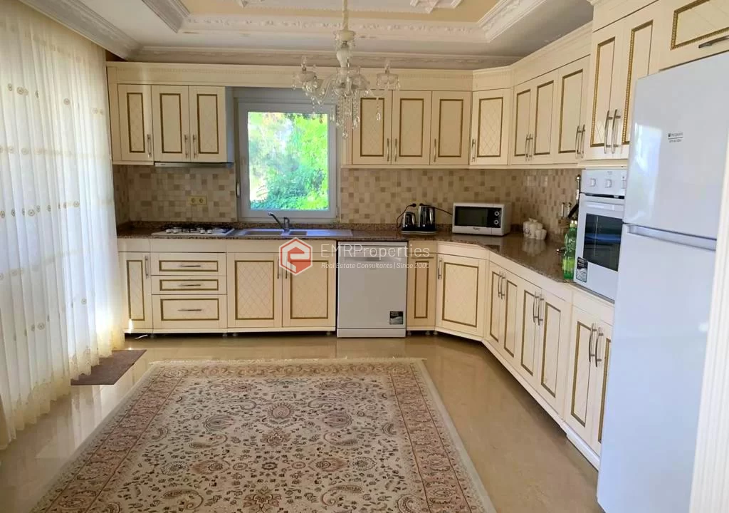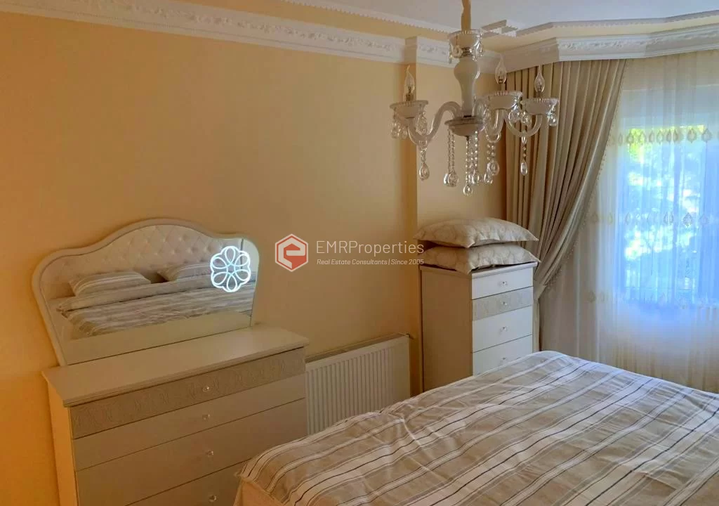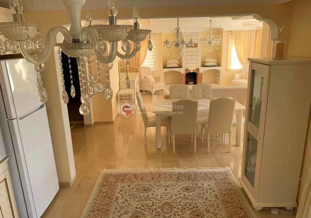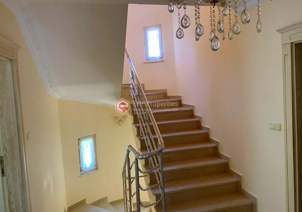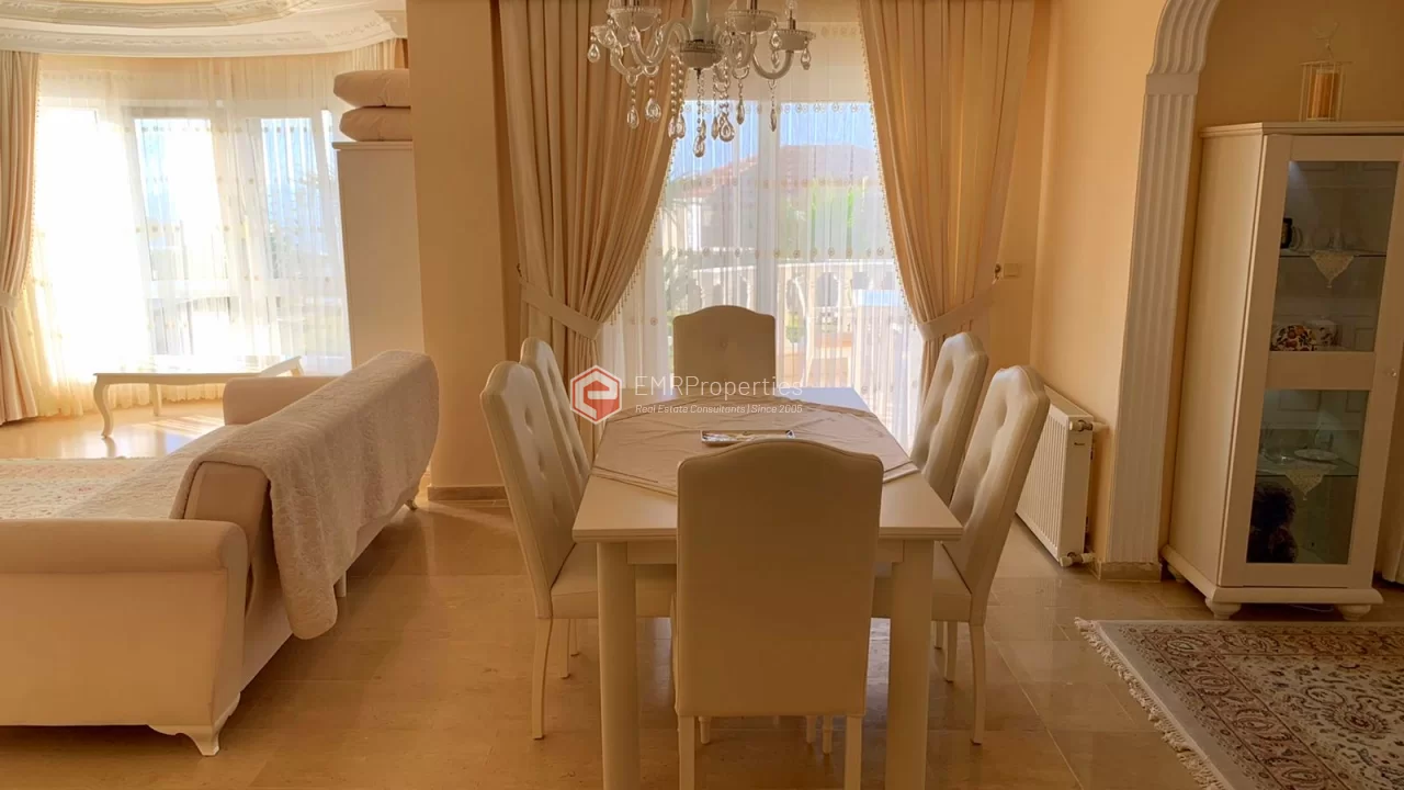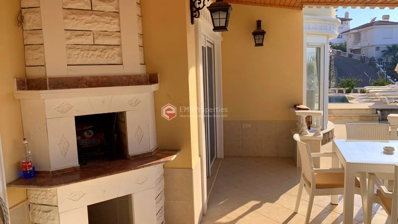 Smještena na sigurnom mjestu u Alanya Kargicaku, vila se sastoji od 4 spavaće sobe, 2 dnevne sobe, velike američke kuhinje, 3 kupaonice i 2 velike terase sa pogledom na more, dvorac, planinu i grad. Na terasi u prizemlju nalazi se privatni prostor za roštilj. Stan se prodaje kompletno namješten i sav namještaj je luksuzan i nov. Vila ima i privatni kamin, jacuzzi i saunu. Ova dupleks vila ima privatni bazen i vrt okružen narandžama, limunom, mandarinom, narom, maslinama, breskvama, dudovima, borovima i palmama, privatni parking za 4 automobila i garažu za 1 auto. Kompleks u kojem se nalazi vila uključuje i vodeni tobogan, teretanu i veliki bazen. Udaljen je 800 metara od mora, 10-15 minuta hoda.