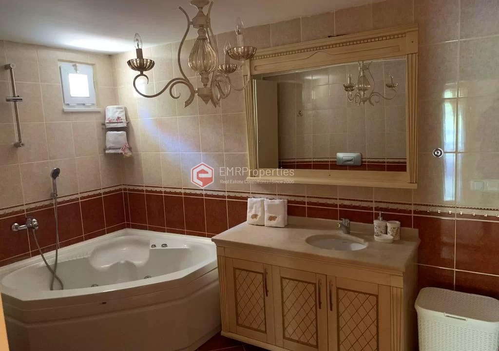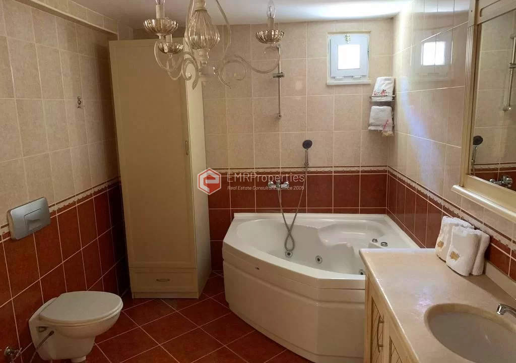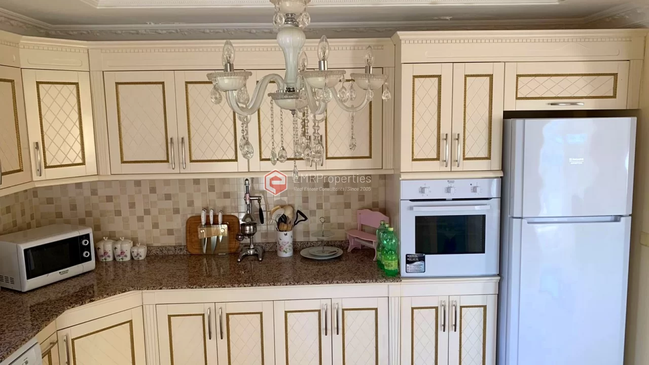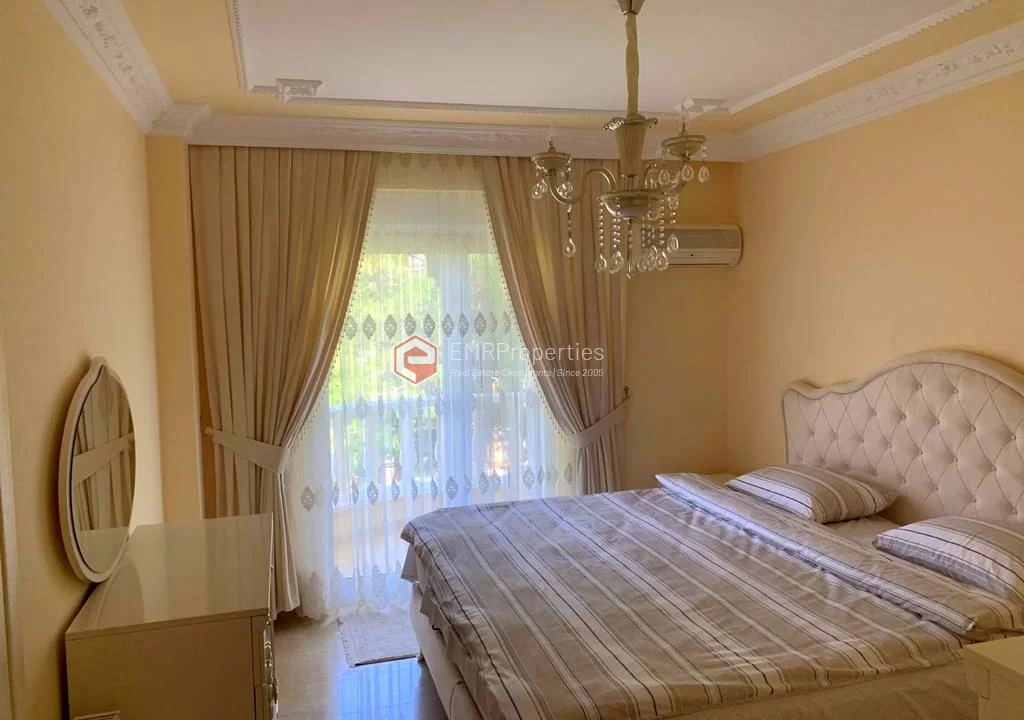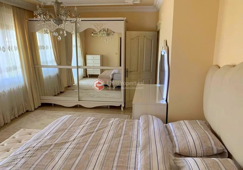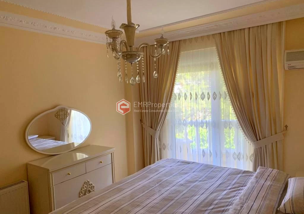 Smještena na sigurnom mjestu u Alanya Kargicaku, vila se sastoji od 4 spavaće sobe, 2 dnevne sobe, velike američke kuhinje, 3 kupaonice i 2 velike terase sa pogledom na more, dvorac, planinu i grad. Na terasi u prizemlju nalazi se privatni prostor za roštilj. Stan se prodaje kompletno namješten i sav namještaj je luksuzan i nov. Vila ima i privatni kamin, jacuzzi i saunu. Ova dupleks vila ima privatni bazen i vrt okružen narandžama, limunom, mandarinom, narom, maslinama, breskvama, dudovima, borovima i palmama, privatni parking za 4 automobila i garažu za 1 auto. Kompleks u kojem se nalazi vila uključuje i vodeni tobogan, teretanu i veliki bazen. Udaljen je 800 metara od mora, 10-15 minuta hoda.