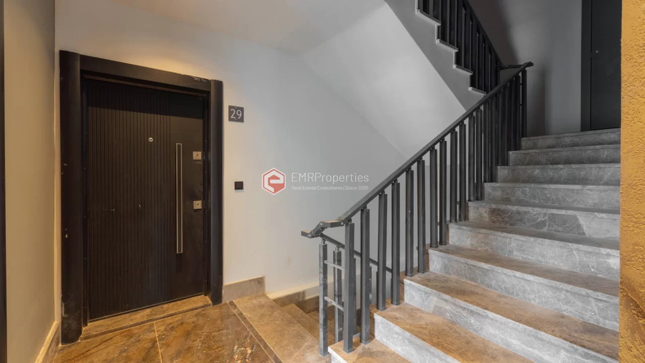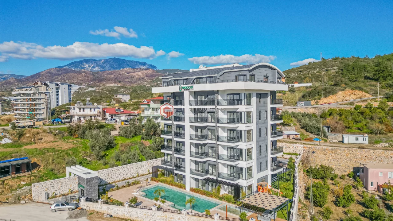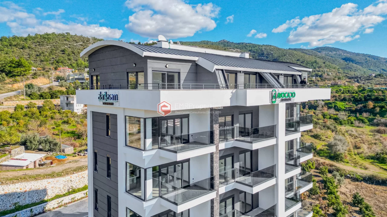 Avakado Residence, smještena u razvijajućem dijelu Demirtaša, je potpuno novi projekat završen 2025. godine. Stan na 5. spratu zgrade od 6 spratova koristi maksimalnu dnevnu svjetlost zahvaljujući širokoj fasadi. Na zgradi je primijenjena visoka standardna toplotna i zvučna izolacija, instaliran je centralni satelitski sistem i generator za slučaj nestanka struje. Kompleks ima domara na usluzi, a vanjski parking osigurava sigurnost vozila. Društveni sadržaji uključuju otvoreni bazen, teretanu sa modernom opremom i saunu. Lokacija na 3000 metara od mora nudi miran život i visok investicioni potencijal.