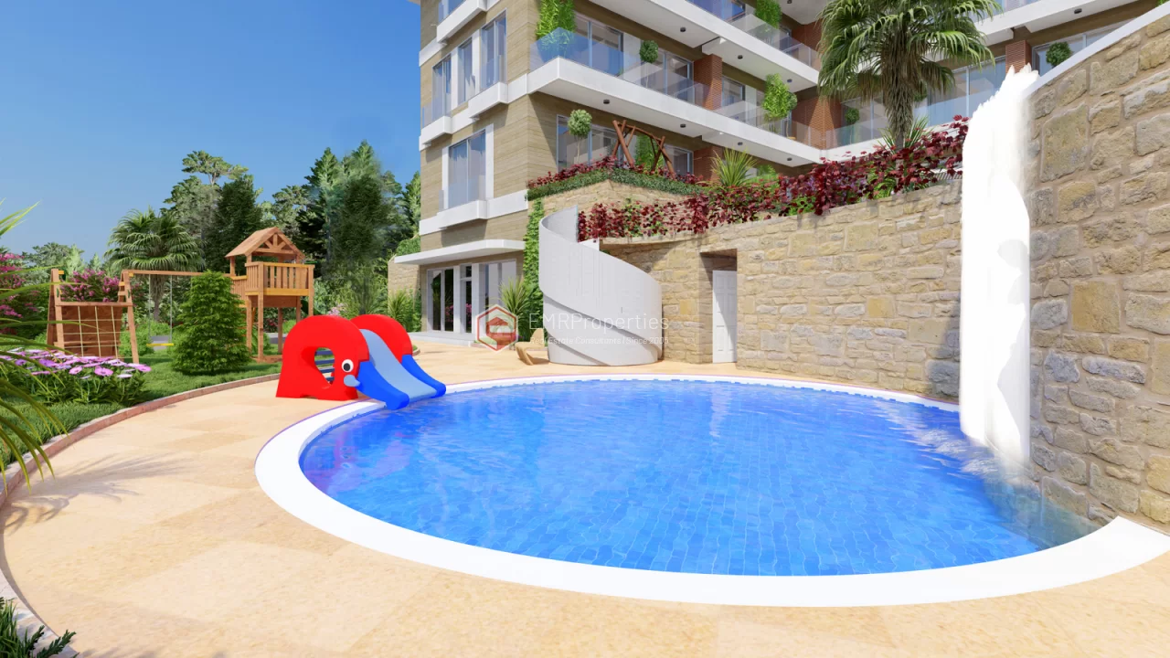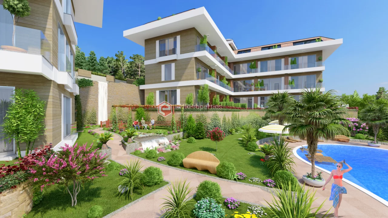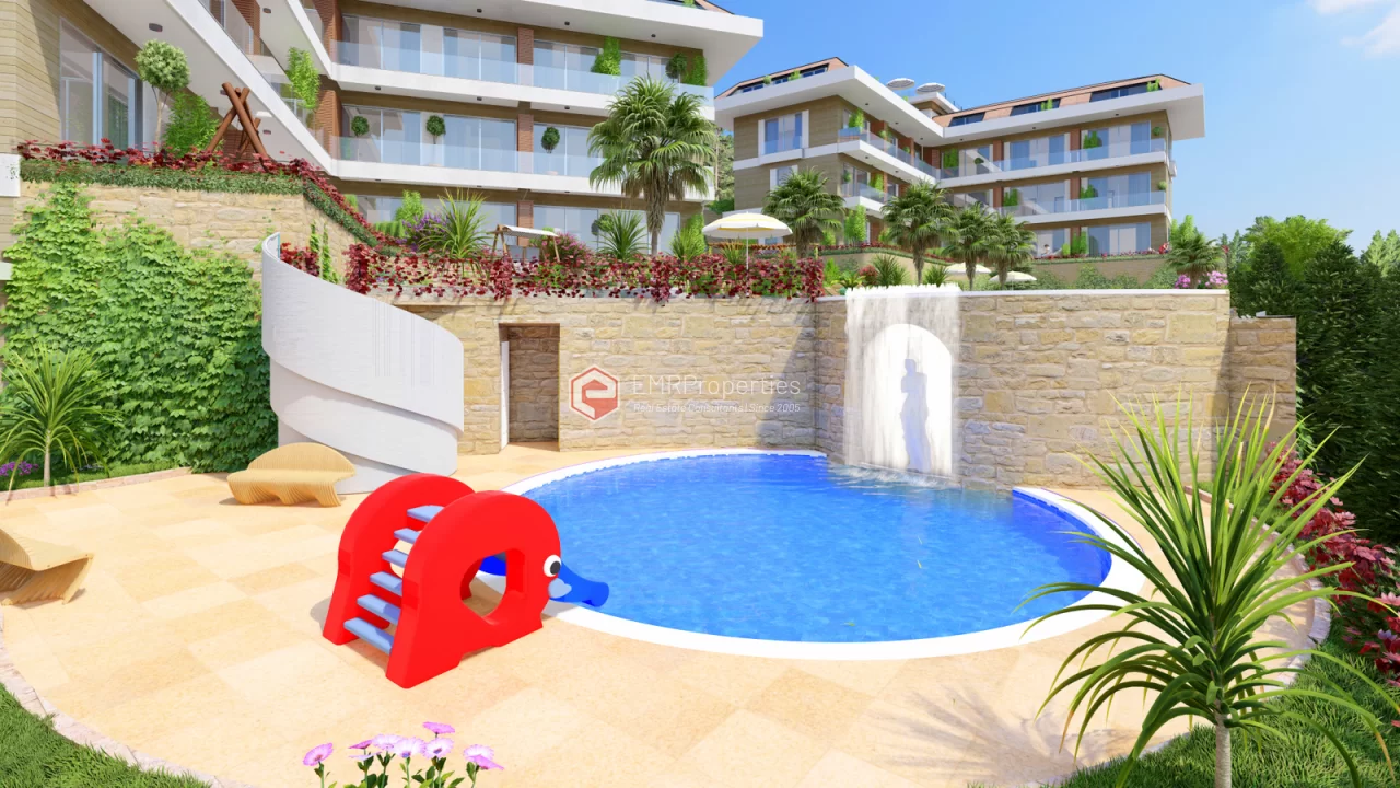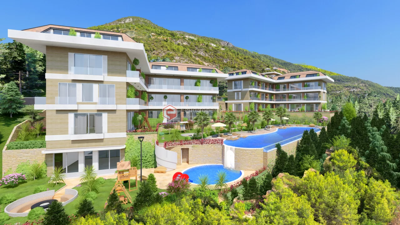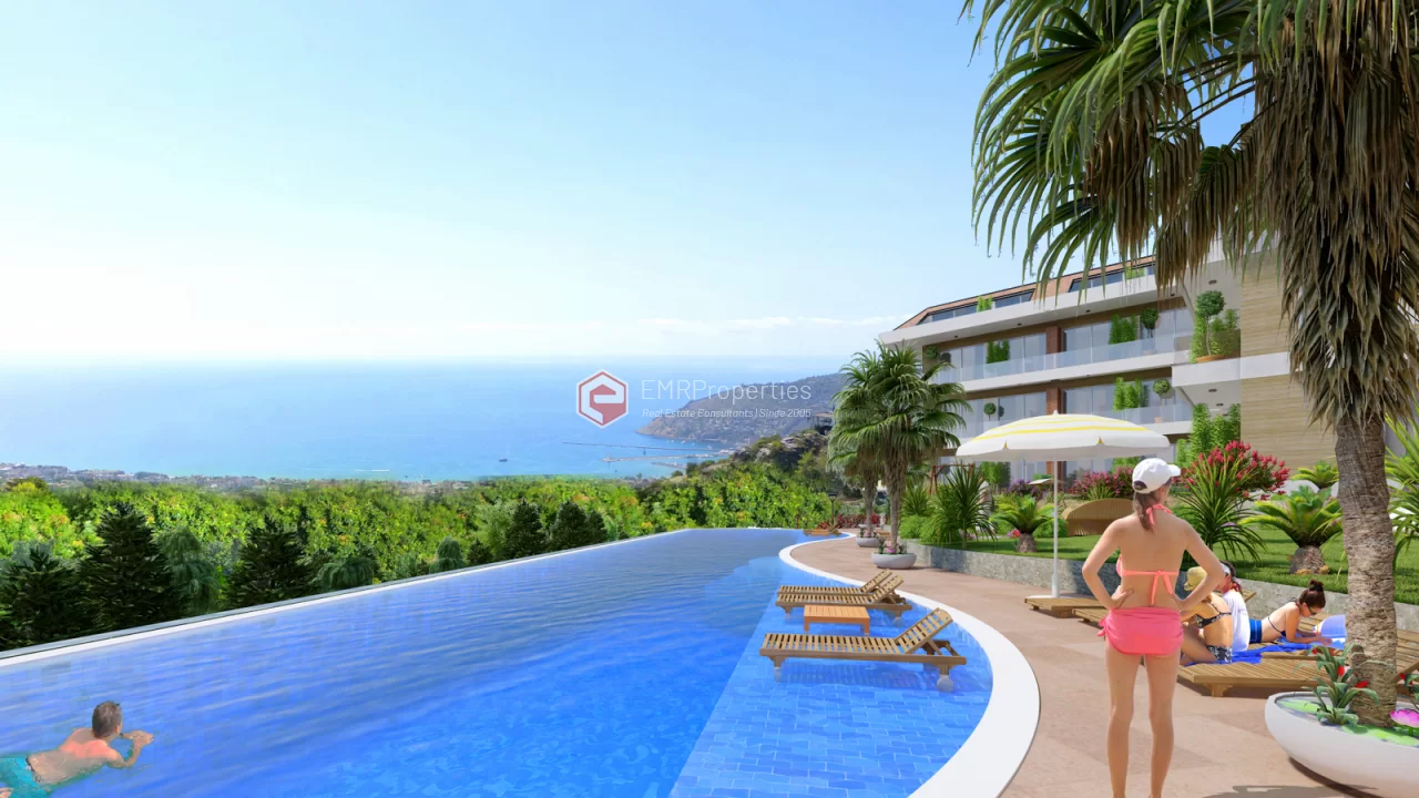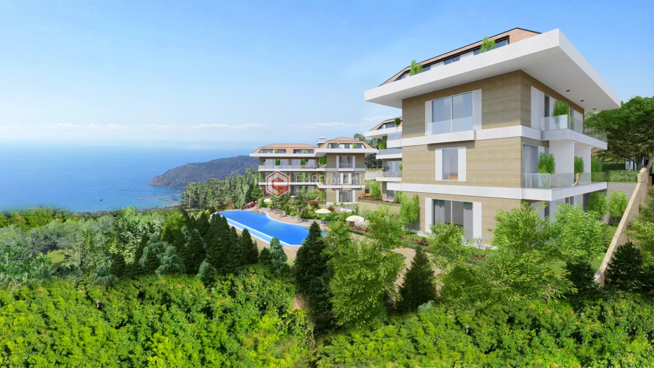 Ovaj projekat luksuzne rezidencije nalazi se u centru grada Alanje, u okrugu Buyukhasbahce. Prekrasan pogled na more na brdu, luku, povijesno brodogradilište, povijesni dvorac Alanya. Nalazi se na jedinstvenoj lokaciji sa pogledom. Prednji dio parcele je okružen borovom šumom mora 320 m od kote je u visini. Komforna rezidencija izgrađena je na parceli od 2884 m2. 80% zemljišta se sastoji od tropskog vrta i dva velika bazena. Preostalih 20% čini 20 luksuznih stanova, uglavnom dupleksa, u dva bloka. Zbog toga je odnos vlažnosti i temperature niži nego u centru grada. Ljeti ima osvježavajući povjetarac s mirisom bora. Rezidencija je bezbedna lokacija sa 24-satnim obezbeđenjem. Rezidencija je udaljena 2.200 metara od mora, 1500 metara od centra grada, udaljenost do autobusne stanice je 700 metara.