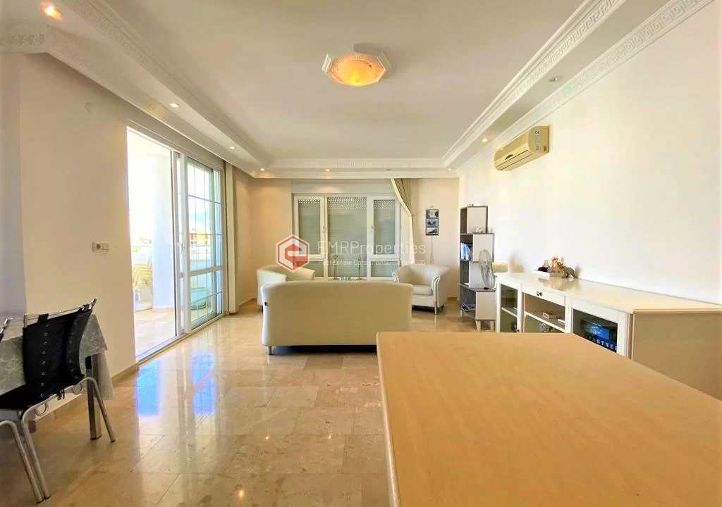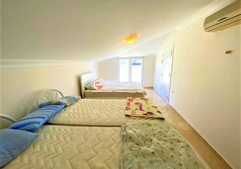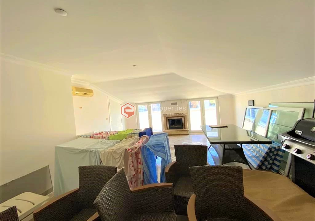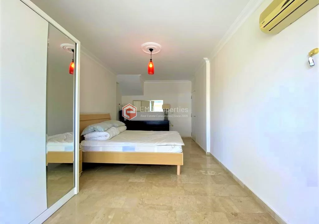 Located in Tosmur, the shining star of Alanya, the duplex-penthouse has 4 bedrooms, an American kitchen, a bright and breeze living room, 2 bathrooms and 2 large balconies. On the 9th floor there is a terrace all around and there is also a whirlpool. The building was built in 2010. As social activities, there is a pool, a camellia and a car park. The building has an elevator, a generator, a caretaker and there is also security cameras. The penthouse is only 500 meters walking distance from the sea.