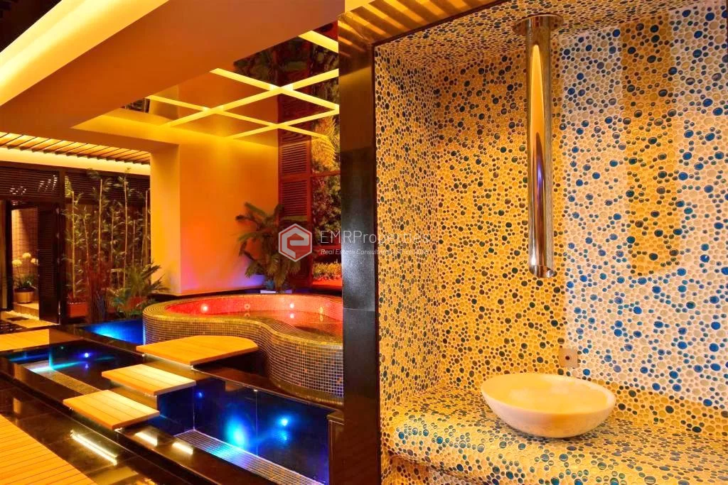 Der Premiumkomplex bietet als 5-Sterne-Hotel ein breites Unterhaltungsangebot und der Villenbesitzer kann von Gemeinschaftsbereichen profitieren. Der Komplex, ein Luxus-Lifestyle-Projekt, wurde auf einem Grundstück von 16.000 m2 geliefert und umfasst 117 Wohnungen - in 10 Flachbaublöcken - und 6 freistehende Villen.