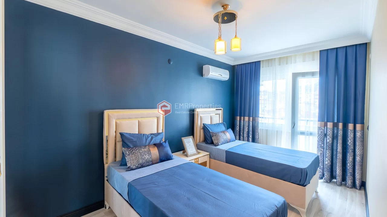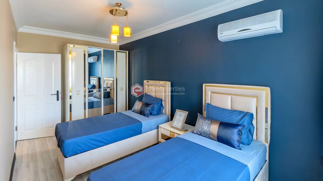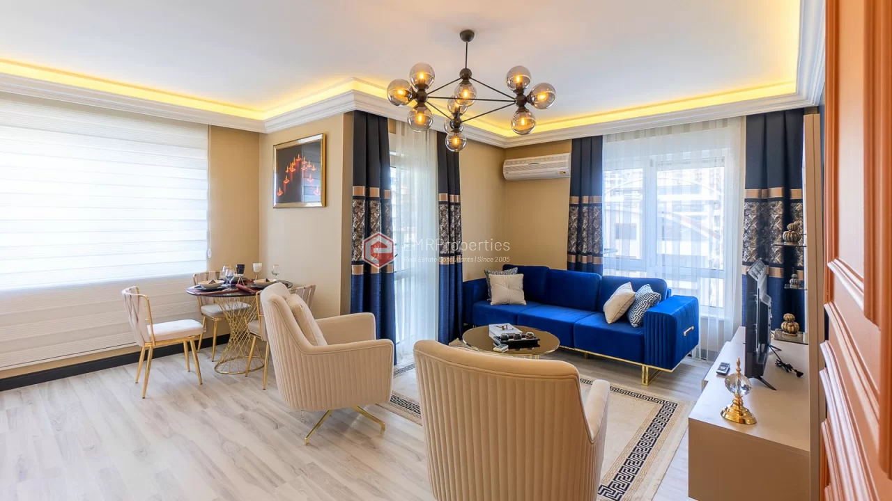 Das stilvolle Apartment befindet sich in einer modernen Residenz in der Gegend von Alanya Cikcilli. Die nach Norden und Westen ausgerichtete Wohnung befindet sich im 1. Stock eines 9 stöckigen Gebäudes. Die zum Verkauf stehende Wohnung besteht aus 2 Schlafzimmern, 1 Wohnzimmer mit amerikanischer Küche, 1 Badezimmer und 2 Balkonen. Die Gesamtfläche der Wohnung beträgt 110 m2. Die 2008 erbaute Wohnanlage liegt 1 km vom Meer entfernt. Es ist nur wenige Gehminuten von Geschäften, Restaurants, Cafés, Einkaufszentren und Verbrauchermärkten, Supermärkten, Krankenhäusern und Haltestellen der öffentlichen Verkehrsmittel entfernt.