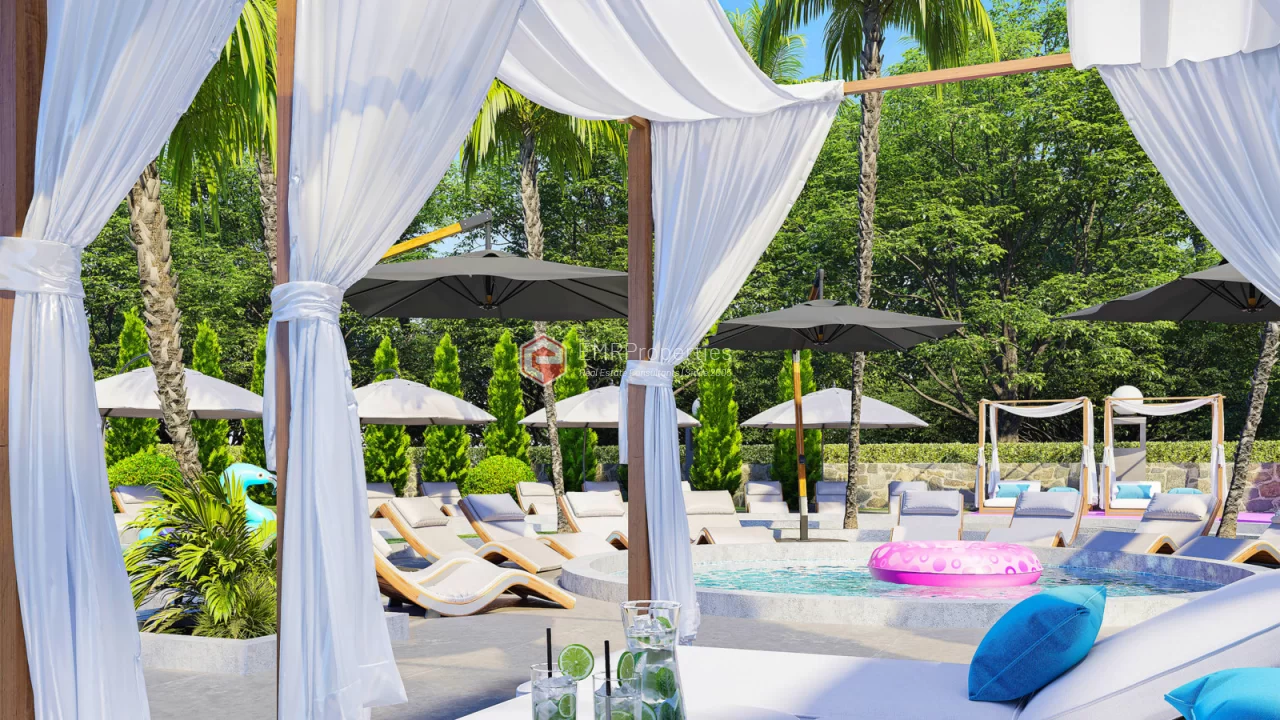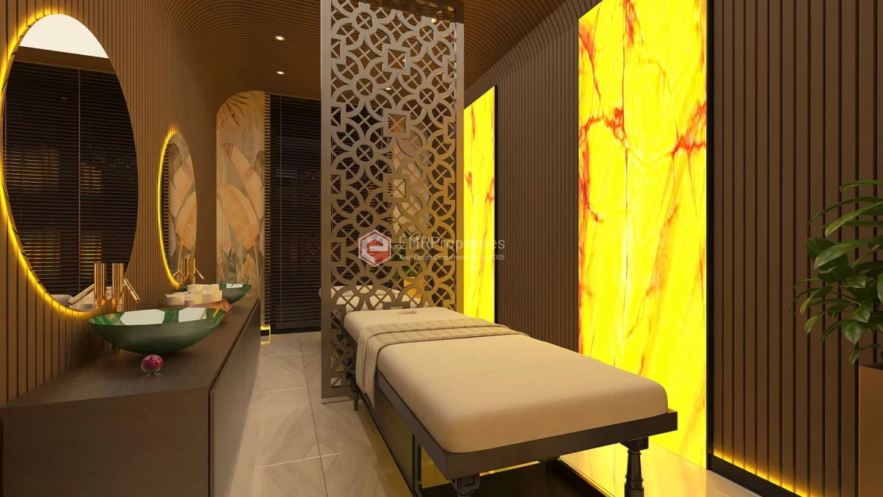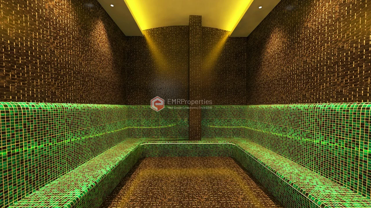 Die Gemeinschaftseinrichtungen sind außergewöhnlich, mit einem großen Swimmingpool und großzügigen Terrassen zum Sonnenbaden. Man kann sich leicht vorstellen, in einem luxuriösen SPA zu entspannen, während sich Ihre Kinder in speziellen Spielzimmern vergnügen und Ihr Partner in einem gut ausgestatteten Fitnessstudio trainiert
