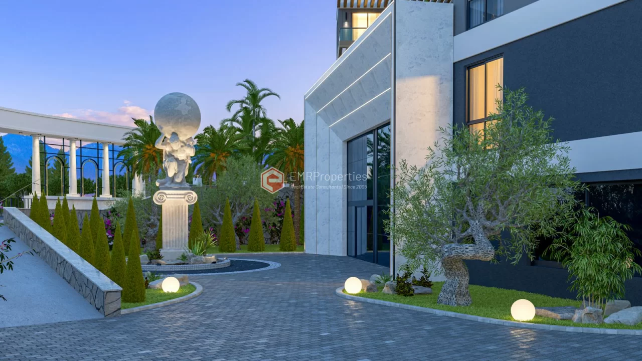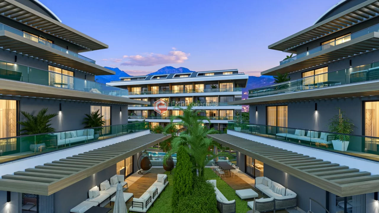Das Projekt zeichnet sich durch seine ikonische Architektur und den Komfort eines Fünf-Sterne-Hotels aus. Solarmodule auf ihren Dächern zielen auf eine kohlenstofffreie Zukunft für alle ab. Das Projekt, das 96 Wohnungen mit verschiedenen Grundrissen umfasst, besteht aus 4 Blöcken. Das moderne Design des Projekts mit einer Grundstücksfläche von 6581 m2 wurde vom führenden Architekturbüro von Alanya entwickelt.