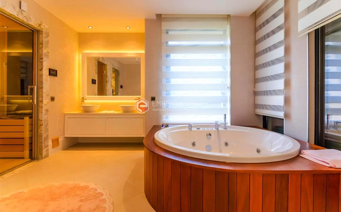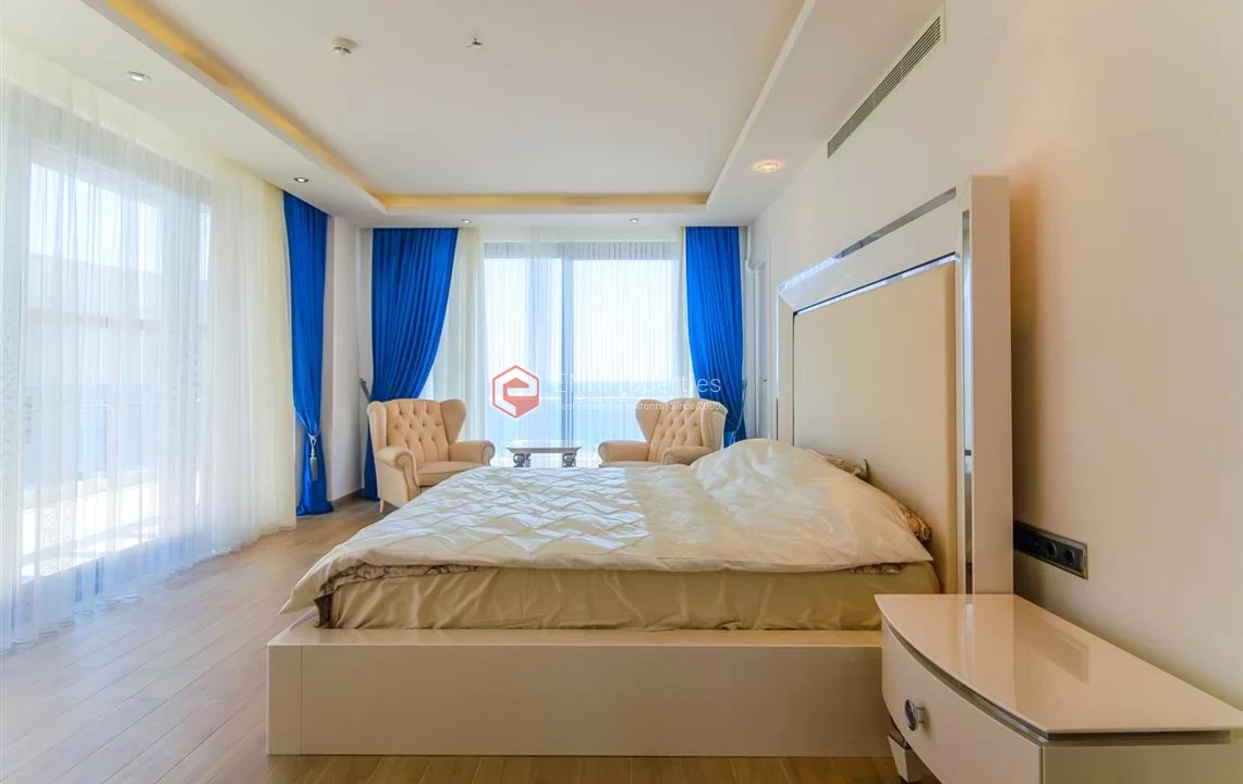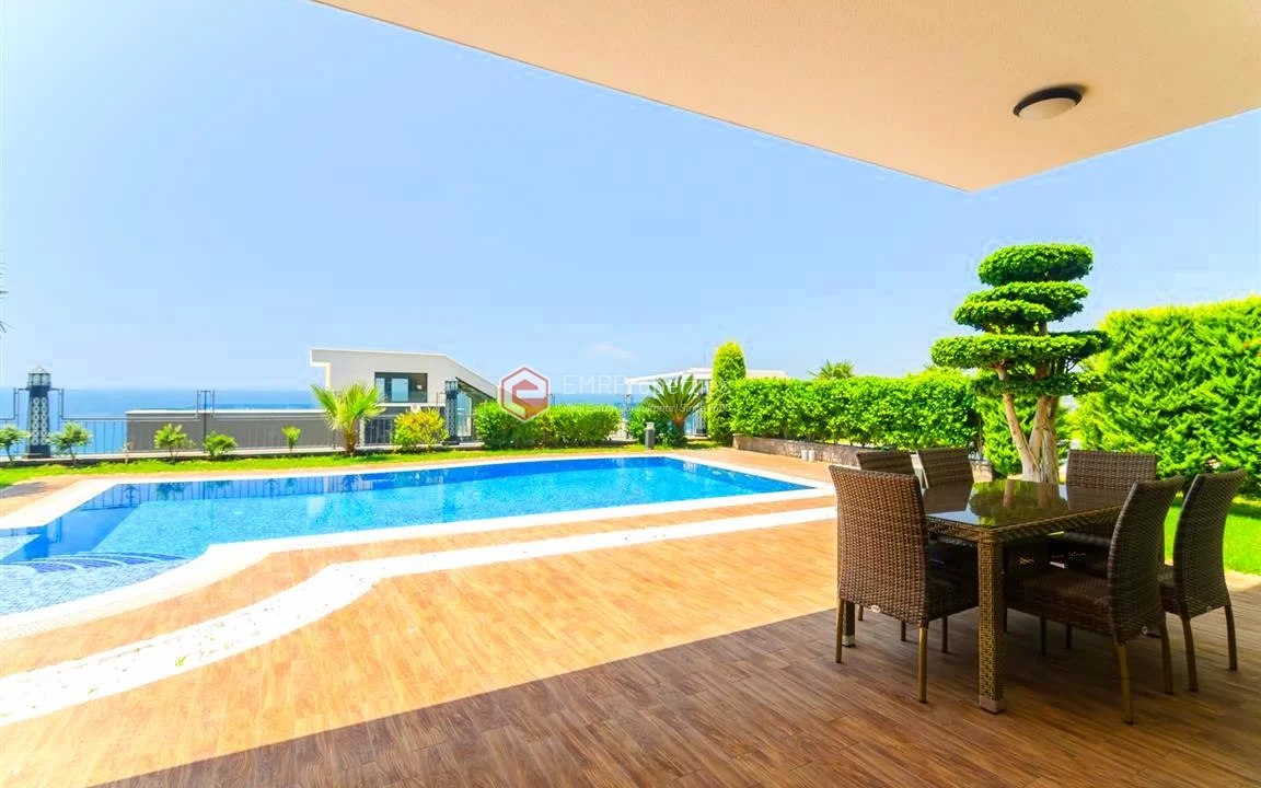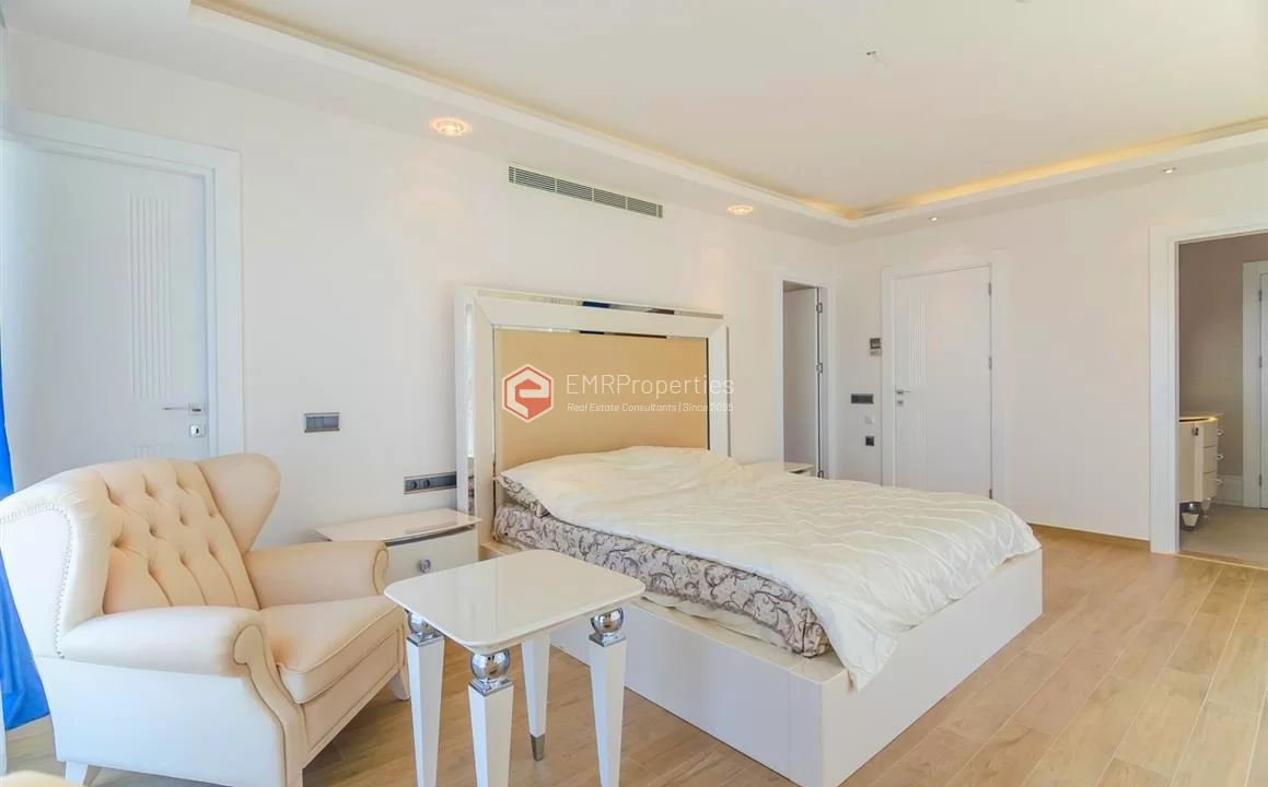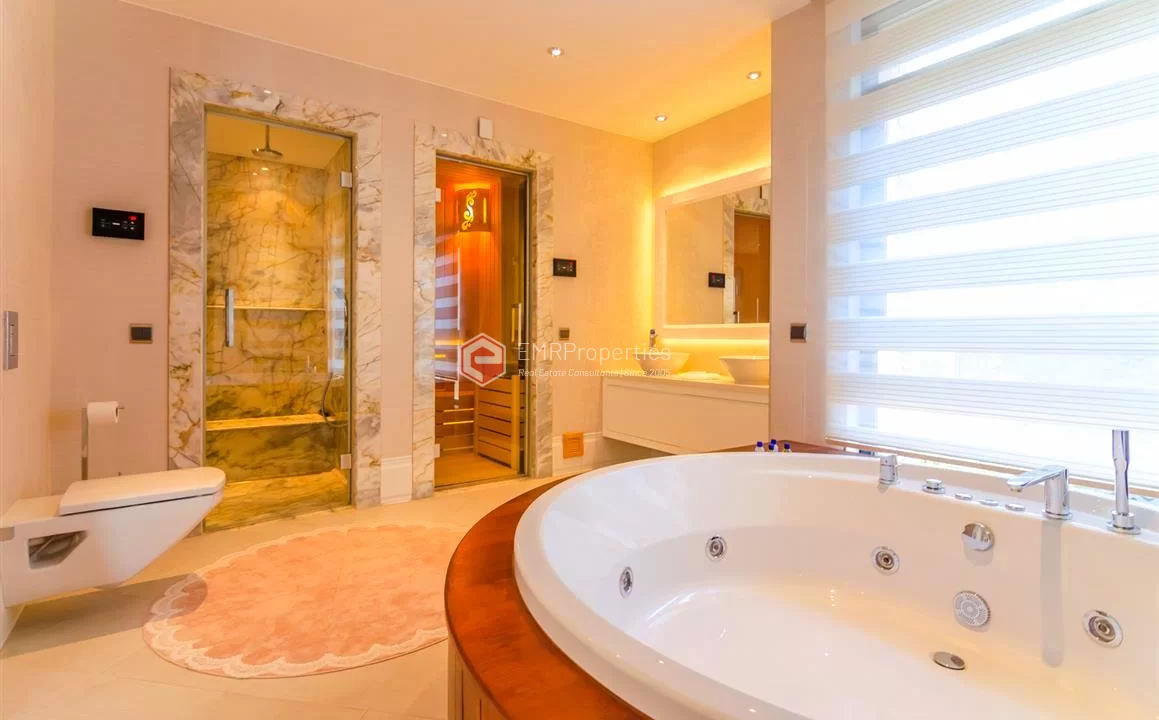 Diese moderne Residenz in Alanya Konakli besteht aus hochwertigen, freistehenden Villen. Diese Luxusvilla mit einem besonderen Innendesign wurde auf insgesamt 1000 Dekar Land gebaut und hat eine Breite von 520 Quadratmetern. Mit Blick auf das Meer, die Berge und die Natur verfügt die Villa über 5 Schlafzimmer, ein Wohnzimmer mit amerikanischer Küche, 4 Badezimmer, große Balkone und eine wunderschöne Terrasse. Die Villa verfügt über einen privaten Pool, Garten und Parkmöglichkeiten. Darüber hinaus gibt es in der Villa, die mit stilvollen Möbeln eingerichtet ist, einen Kamin, eine Sauna, einen Whirlpool und ein Türkisches Bad.