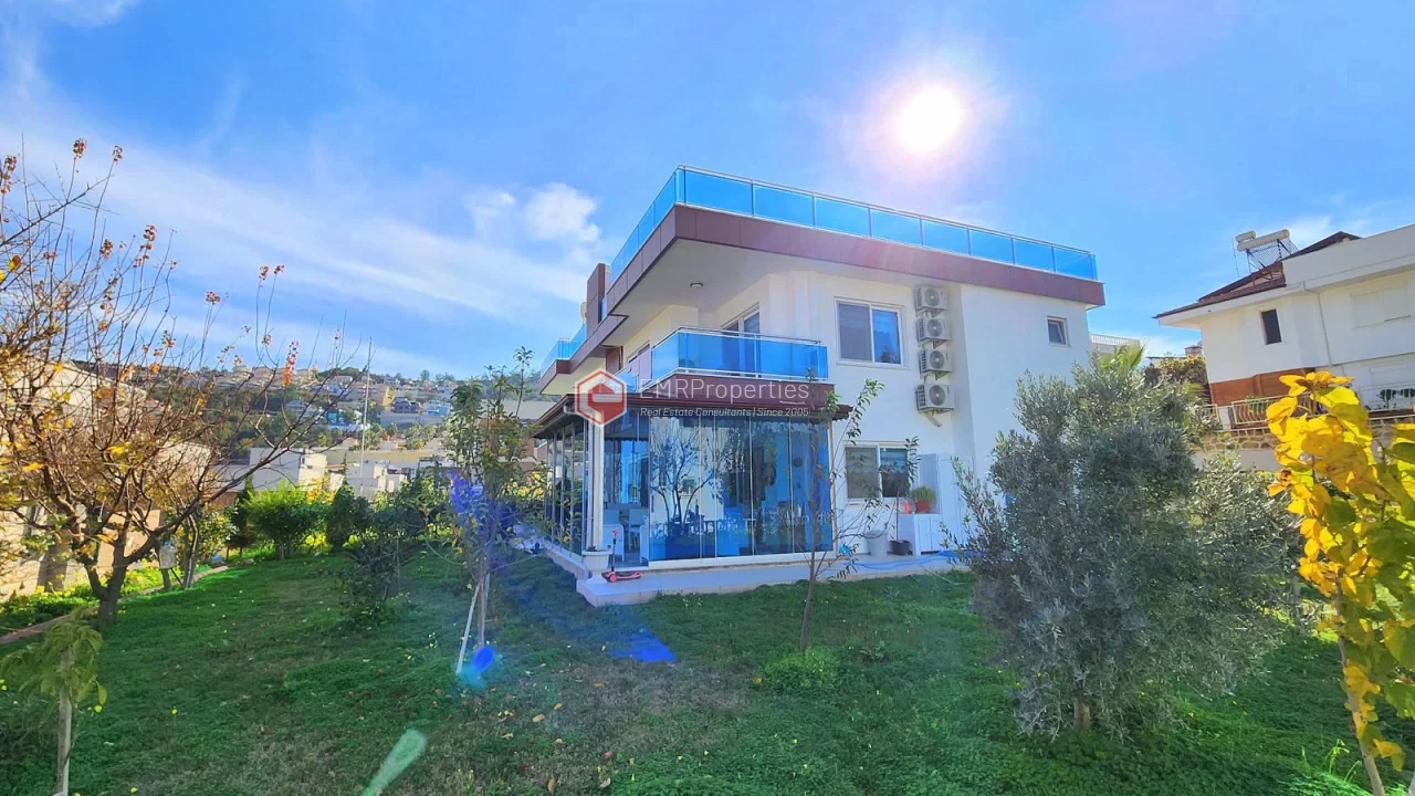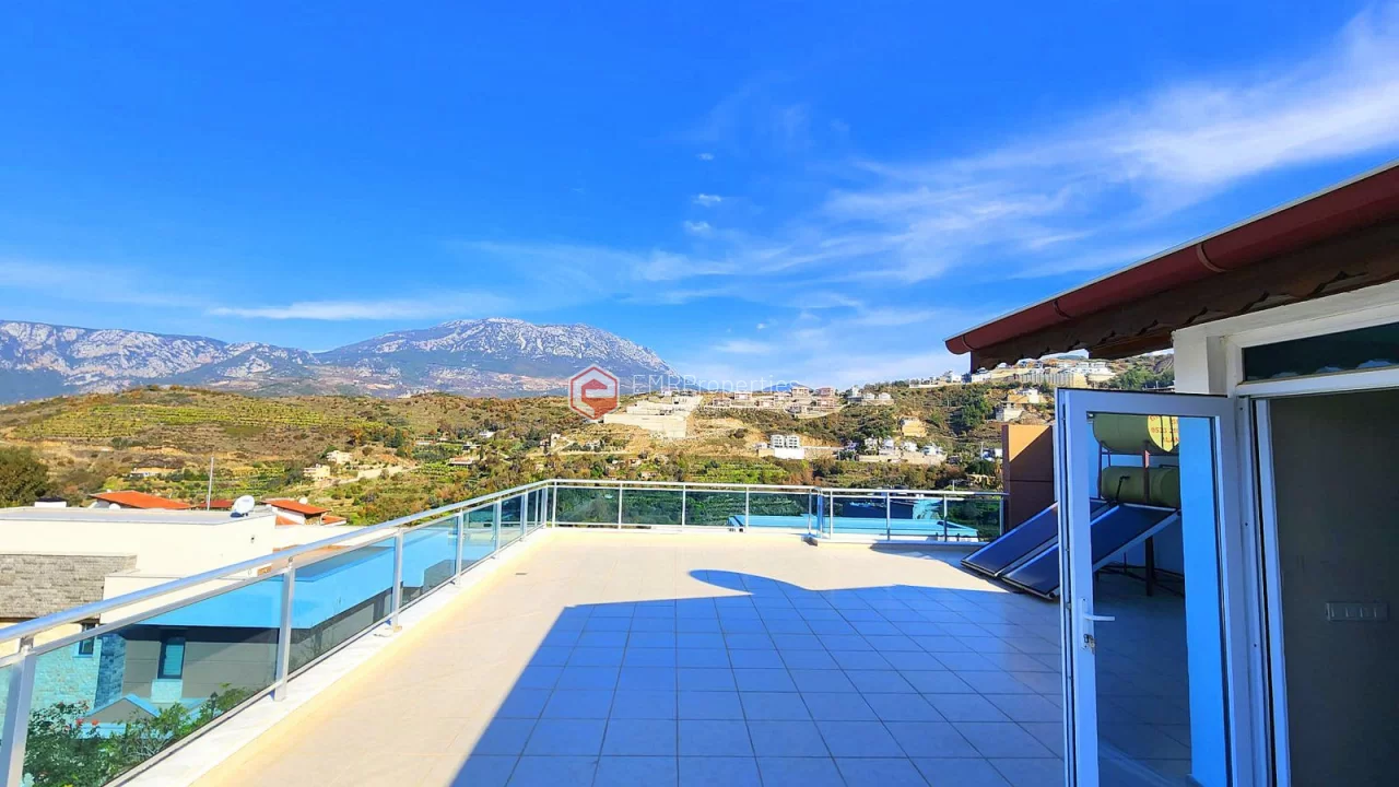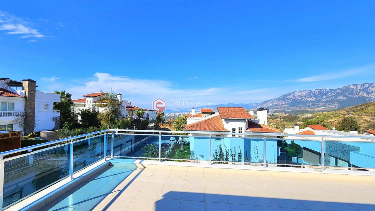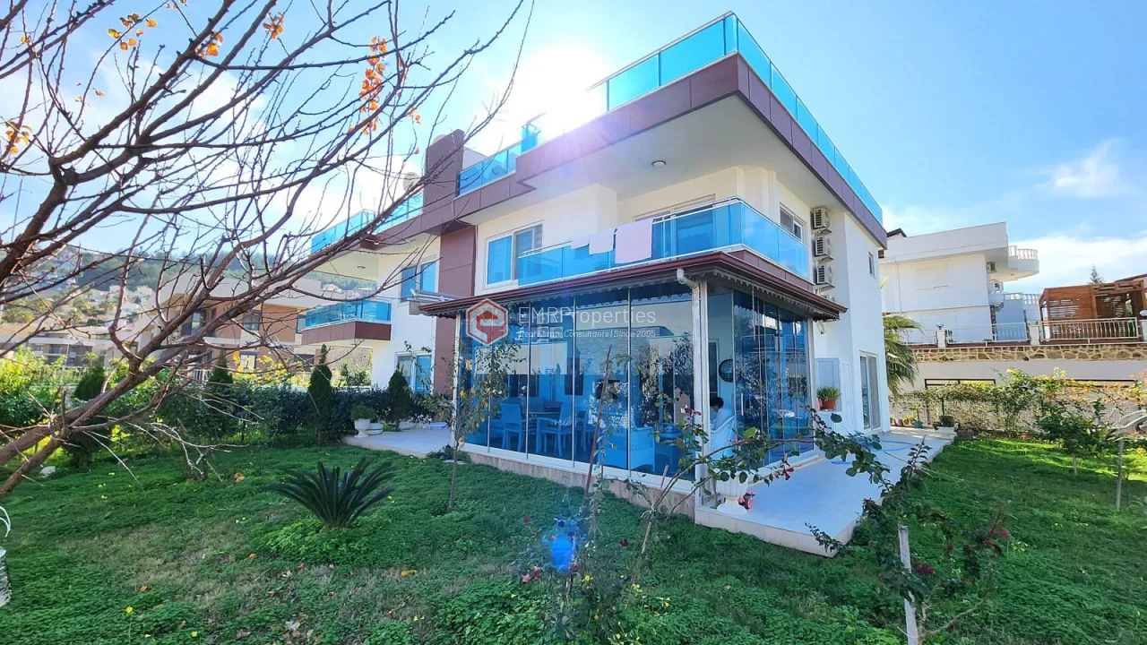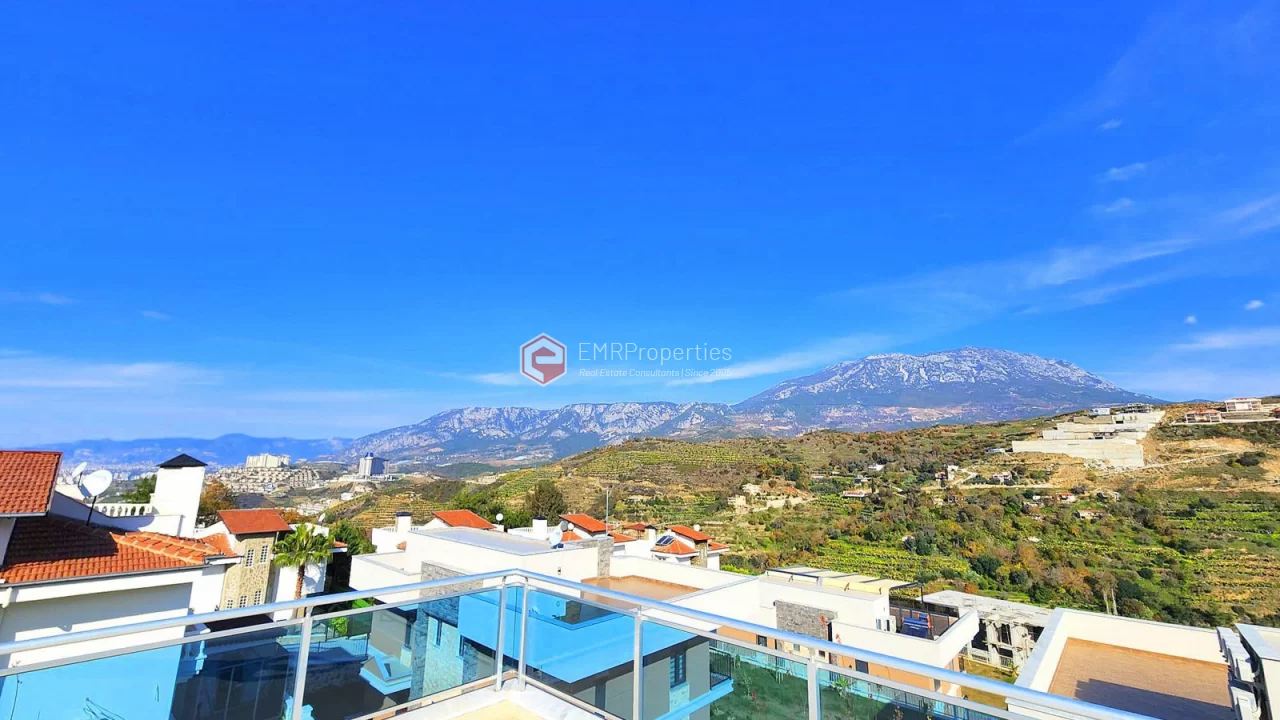 This twin villa is located in Kargicak, an ecologically clean area, 4 km from the sea. The villa has 180 square meters of living space. Luxury furnished villa has 3 bedrooms, 1 living room with American kitchen and 3 bathrooms. The villa with full activity has an infrastructure in the concept of a hotel. From the windows of the south and west facing villa, you will have magnificent views of lush mountains, pine forests and banana groves.