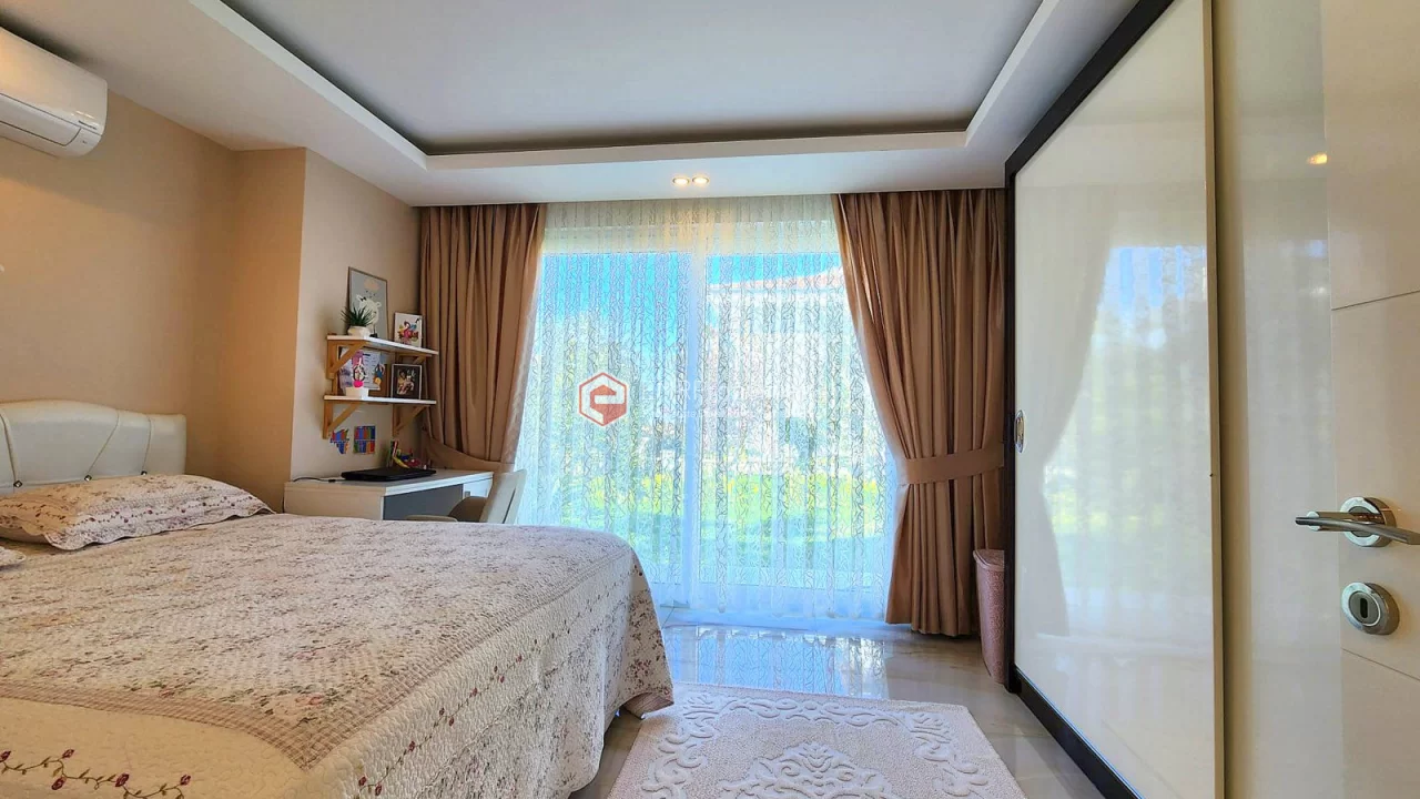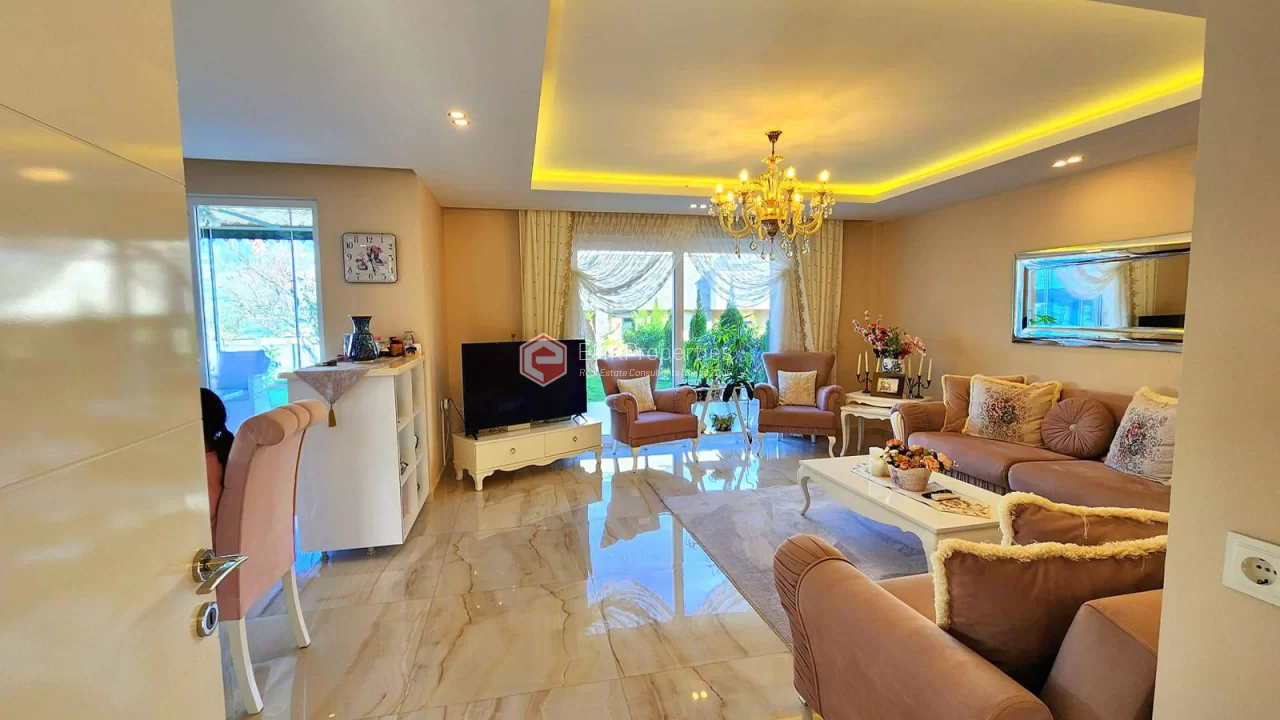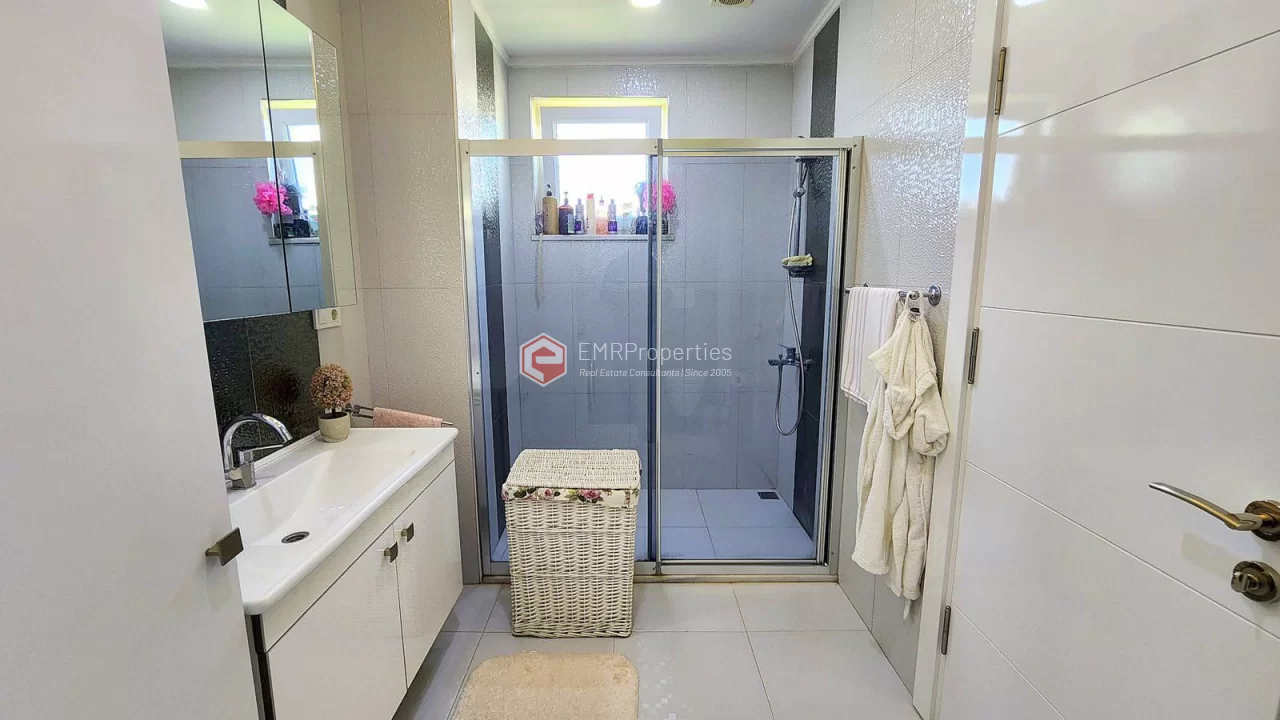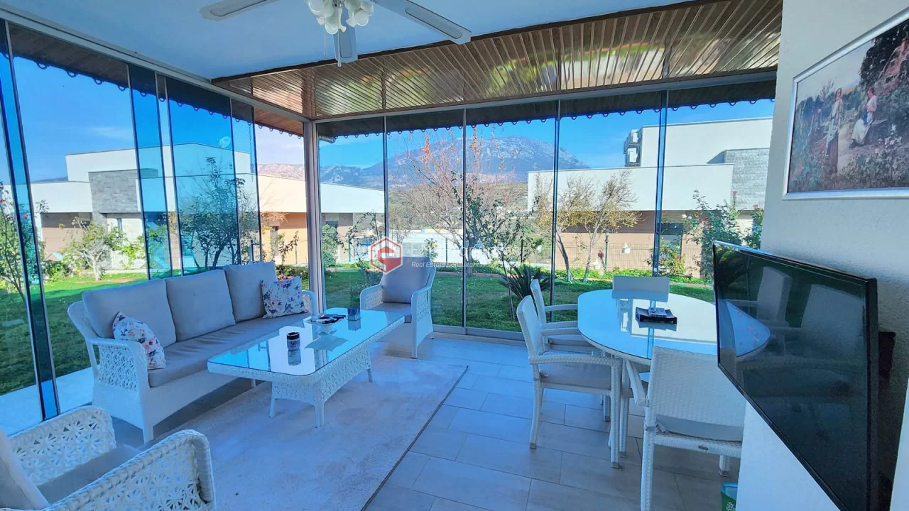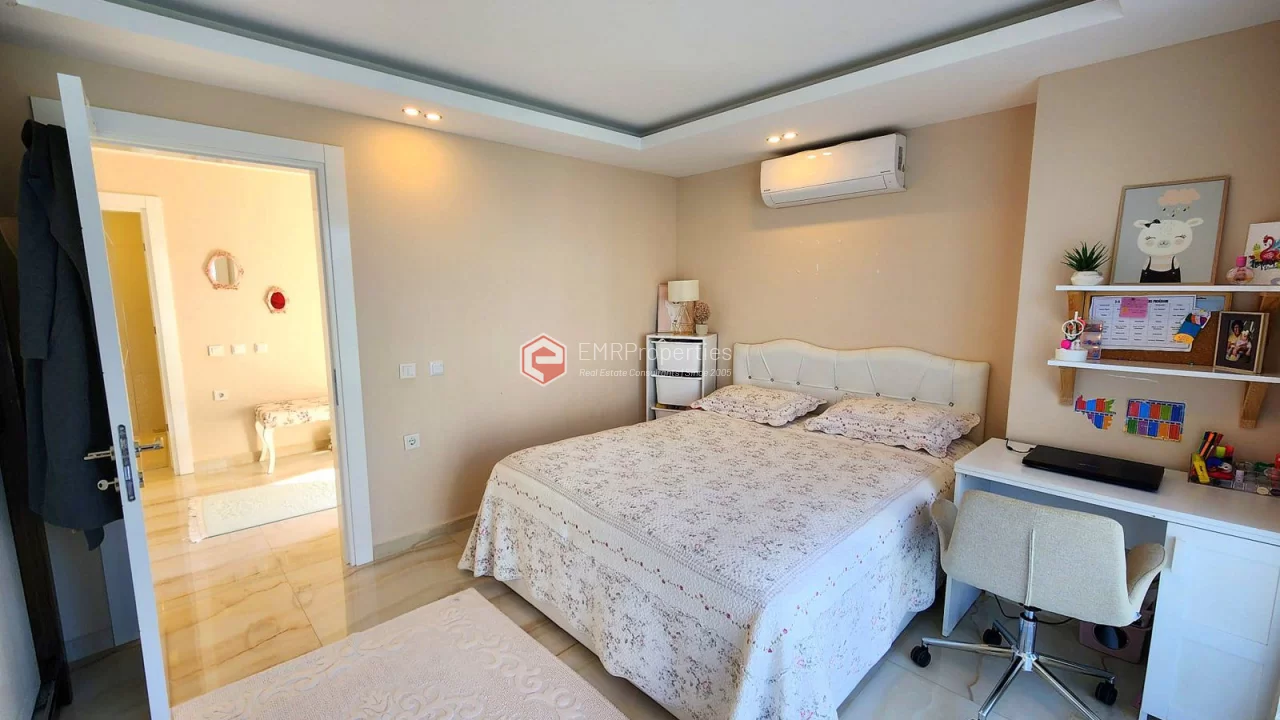 This twin villa is located in Kargicak, an ecologically clean area, 4 km from the sea. The villa has 180 square meters of living space. Luxury furnished villa has 3 bedrooms, 1 living room with American kitchen and 3 bathrooms. The villa with full activity has an infrastructure in the concept of a hotel. From the windows of the south and west facing villa, you will have magnificent views of lush mountains, pine forests and banana groves.