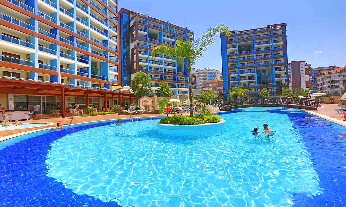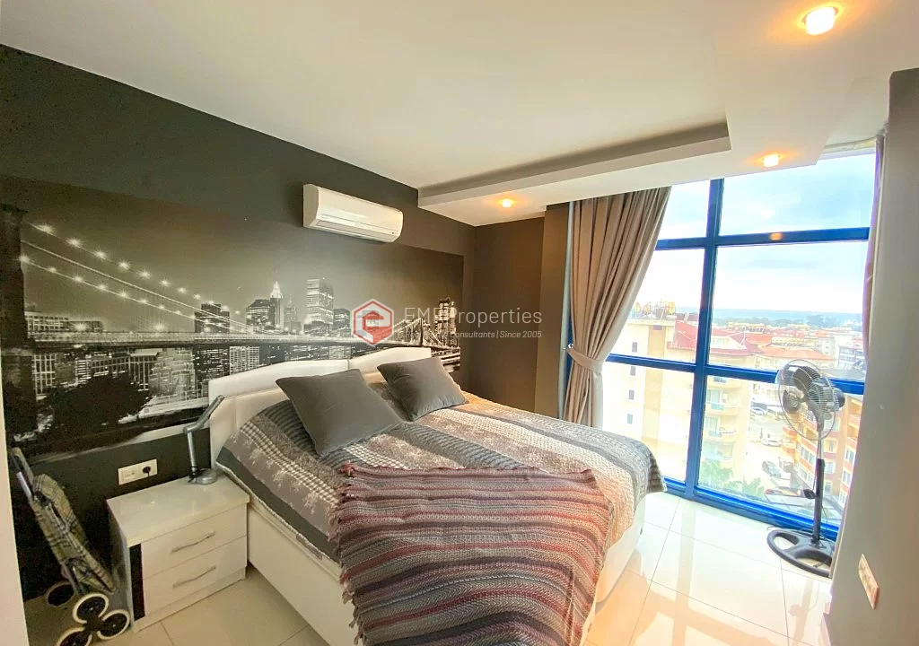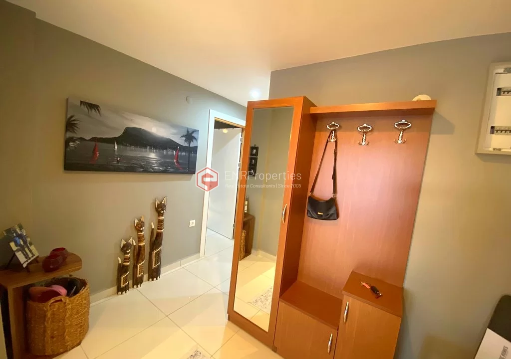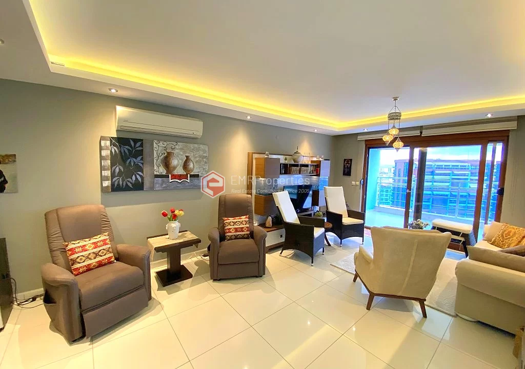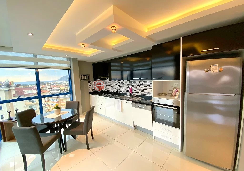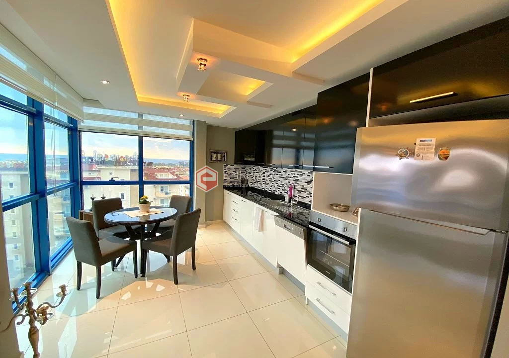 Меблированная квартира расположена в хорошо оборудованном комплексе с точки зрения социальной жизни и окружающей среды. Квартира площадью 100 квадратных метров состоит из 2 спален, 1 гостиной, отдельной кухни и 2 ванных комнат. Расположенная на 8 этаже, квартира предлагает великолепный вид на море и крепость Аланьи. Комфортабельная квартира была построена в 2012 году. Комплекс предлагает сад и зоны отдыха, спа-центр, фитнес-центр, крытый бассейн с подогревом и множество других возможностей для развлечений и отдыха.