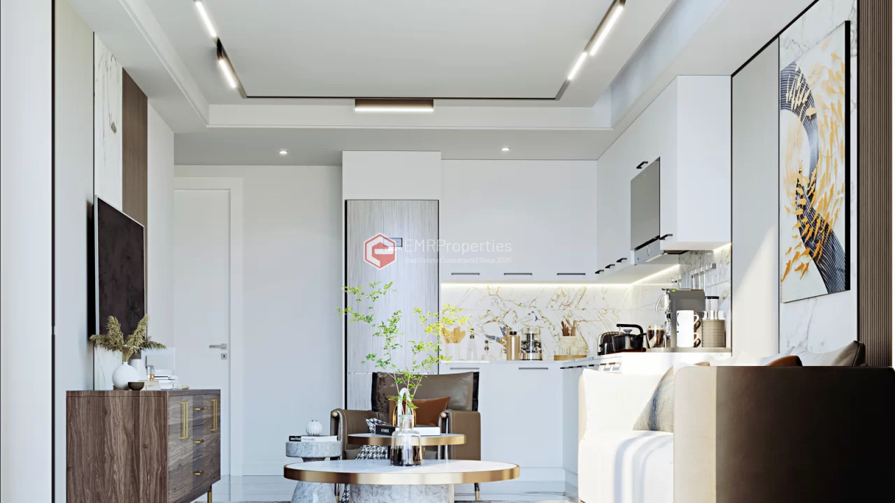 Одним из ключевых преимуществ является 12-месячный план оплаты, который делает покупку квартиры максимально доступной. Расположение в 2 километрах от пляжа и близость к торговому центру, всего в 10 минутах, обеспечивают удобный доступ ко всем необходимым услугам и развлечениям.