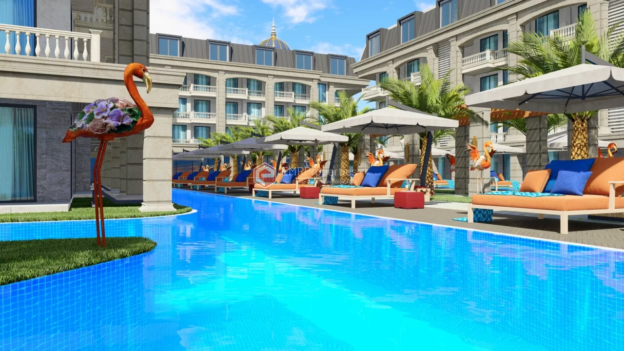 This luxury housing project to be built in the touristic town of Alanya, Turkler, consists of 1+1 apartments, garden floor duplex apartments and penthouse duplexes. For those who dream of living in an ecologically clean area by the sea, the pearl of Turkey, Alanya, is a popular holiday destination for many foreigners. The apartments, which have 3 different facade types as south, east and west, offer pool, sea and river views. Flats with 3 different facade types, south, east and west, offer pool, sea and river views. The project, which has its own social infrastructure, is close to the Incekum Forest Park and is only 700 meters from the pleasant beach.